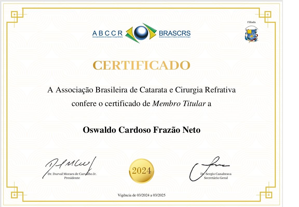 Quais são as principais especialidades de Oswaldo Cardoso Frazao Neto?Oswaldo Cardoso Frazao Neto é oftalmologista. Te mostramos alguns dos serviços oferecidos pelo especialista graças à sua trajetória e vasta experiência: Primeira consulta Oftalmologia, Consulta Oftalmologia, Análise e solicitação de exames, Cirurgia de catarata, Mapeamento de retina, Blefaroplastia, Retorno de consultas Oftalmologia, Avaliação do risco cirúrgico, Consulta especializada de glaucoma, Teste de visão.