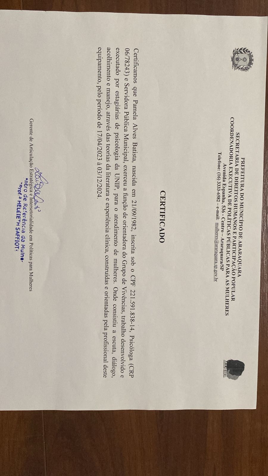 Atuo desde 2008 no Centro de Referência da Mulher, somando ampla experiência com mulheres e todas as suas demandas.