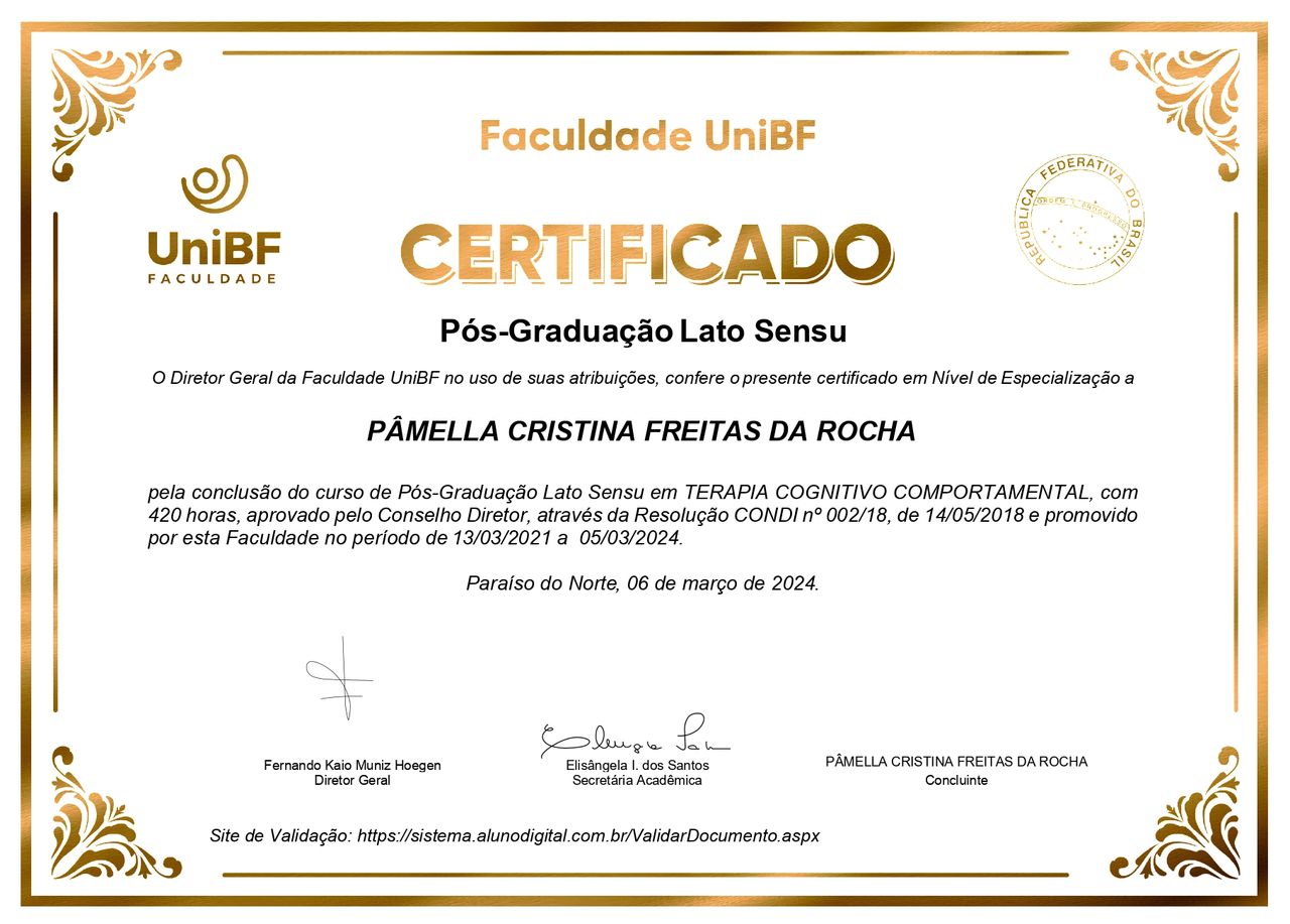 Quando poderia me consultar com Pâmella Cristina Freitas da Rocha?Pâmella Cristina Freitas da Rocha costuma ter horários disponíveis dentro da mesma semana ou para a semana seguinte. Verifique o calendário: você verá o primeiro horário disponível, atualizado em tempo real. Caso o horário sugerido não funcione para você, verifique outras datas. Agendar uma consulta é sempre imediato e gratuito.