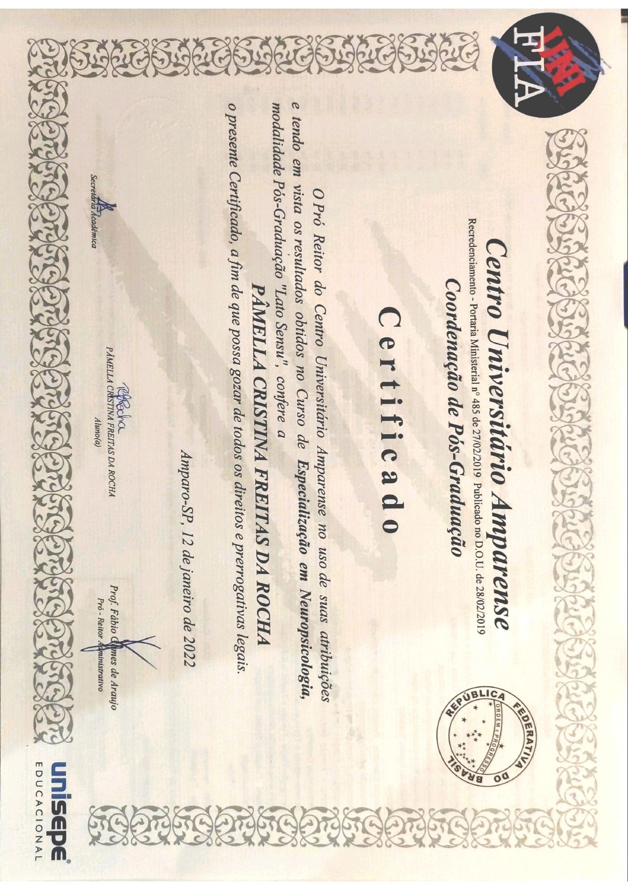 Quais são as principais especialidades de Pâmella Cristina Freitas da Rocha?Pâmella Cristina Freitas da Rocha é psicóloga. Te mostramos alguns dos serviços oferecidos pelo especialista graças à sua trajetória e vasta experiência: Primeira consulta psicologia, Acompanhamento neuropsicologico TEA - Transtorno de Espectro do Autismo, Autismo e desenvolvimento neurotípico - avaliação, Avaliação Cognitiva, Avaliação do perfil cognitivo, Avaliação e reabilitação neuropsicólogica, Avaliação funcional dos comportamentos adaptativos, Avaliação neuropsicológica, Avaliação Neuropsicológica c/ laudo, Avaliação neuropsicológica com detecção do espectro autista.