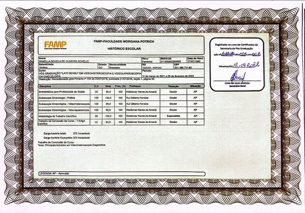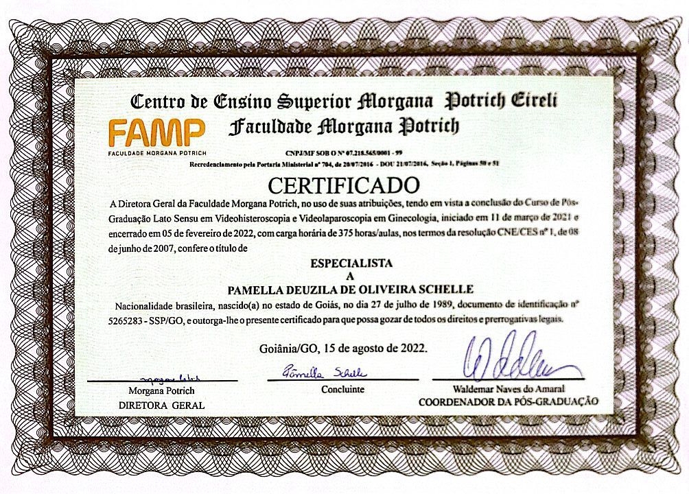Sou médica formada pela Universidade Federal de Goiás (UFG), com residência médica em Ginecologia e Obstetrícia e pós-graduação em Cirurgia Minimamente Invasiva, com foco em laparoscopia e histeroscopia.