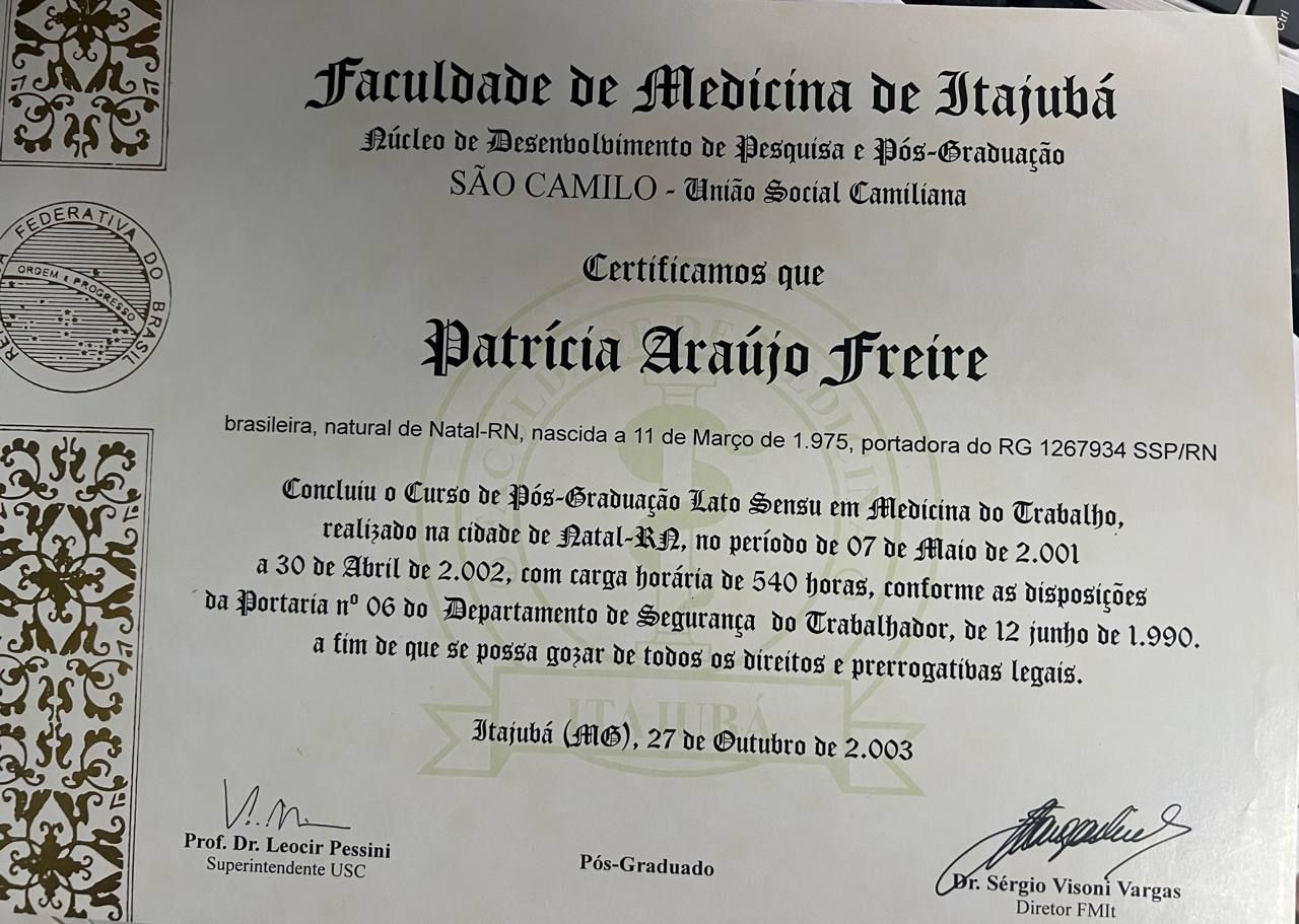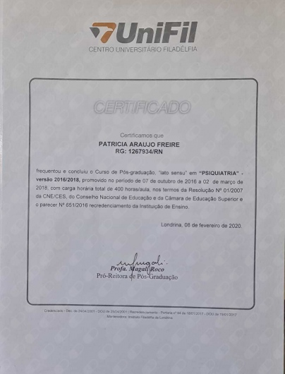 Número de registro: CRM:RN 4010 - RQE Nº: 595 - RQE nao encontrado para (NUTRÓLOGO)