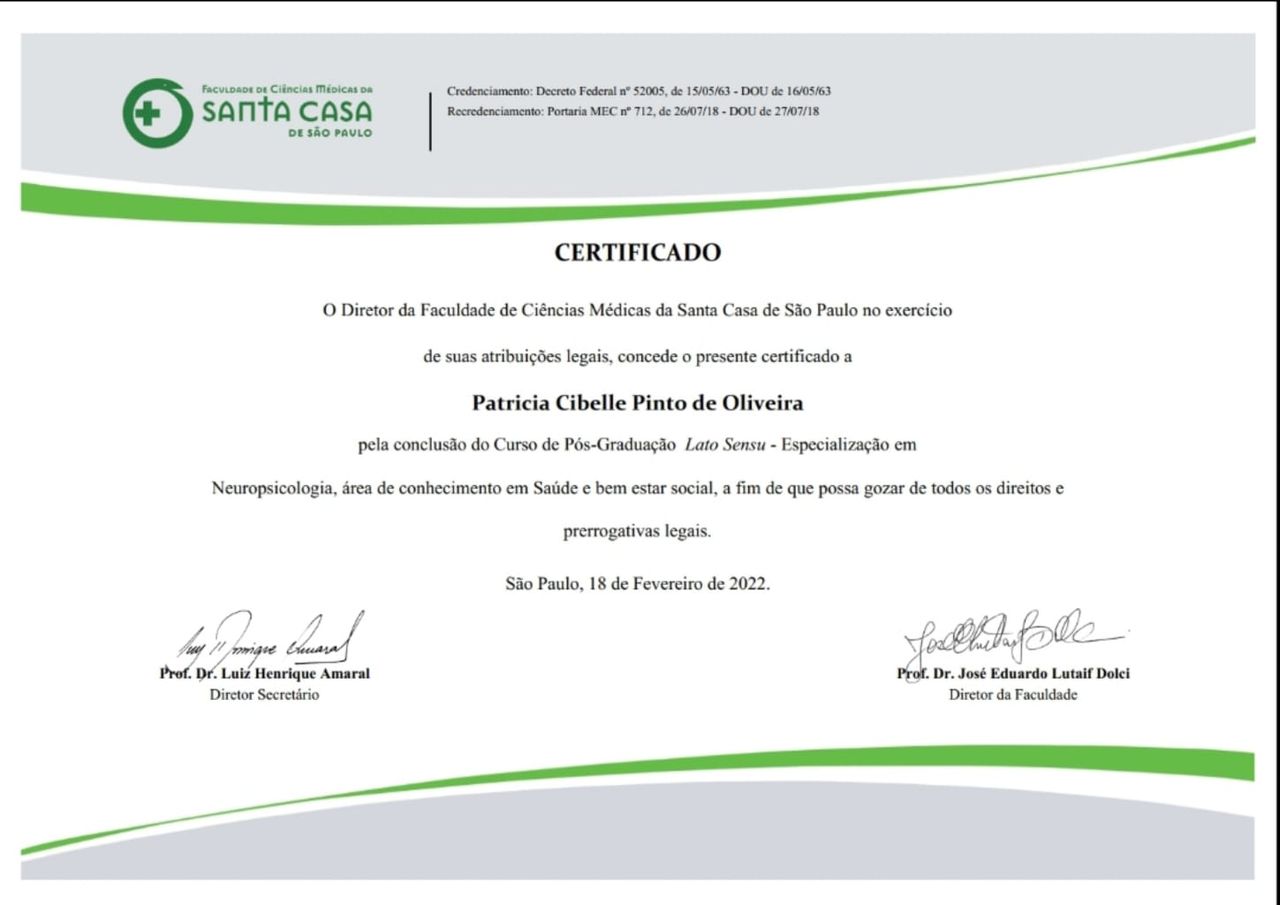 Quais são as principais especialidades de Patrícia Cibelle de Oliveira?Patrícia Cibelle de Oliveira é psicólogo. Te mostramos alguns dos serviços oferecidos pelo especialista graças à sua trajetória e vasta experiência: Avaliação neuropsicológica, Estimulação Cognitiva.