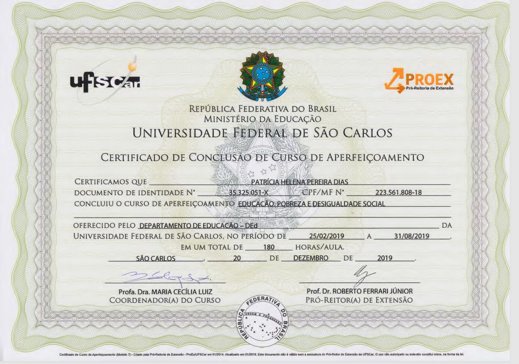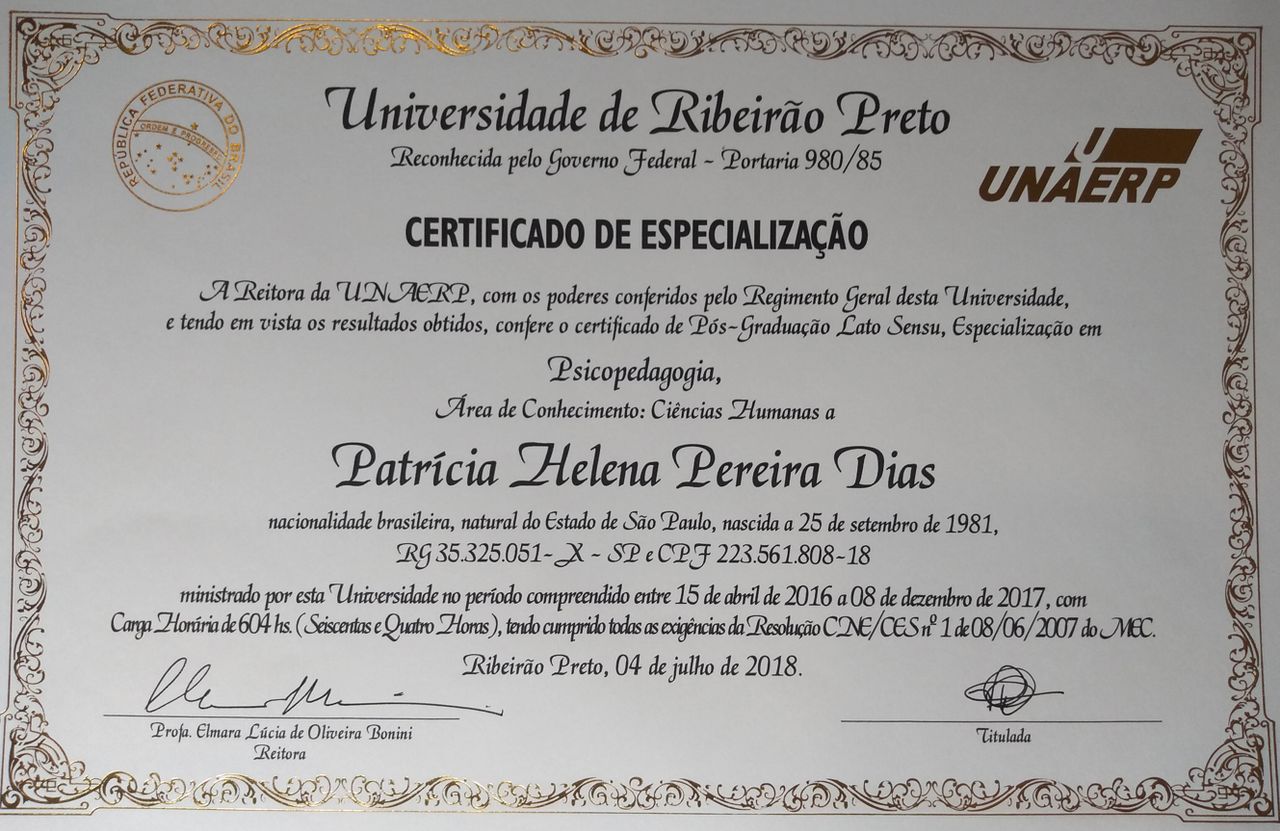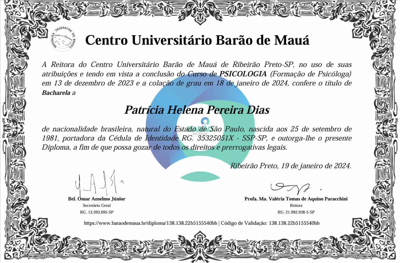 Possuo menção honrosa e prêmio científico na área de Saúde Mental pela Universidade Federal de Viçosa (UFV).