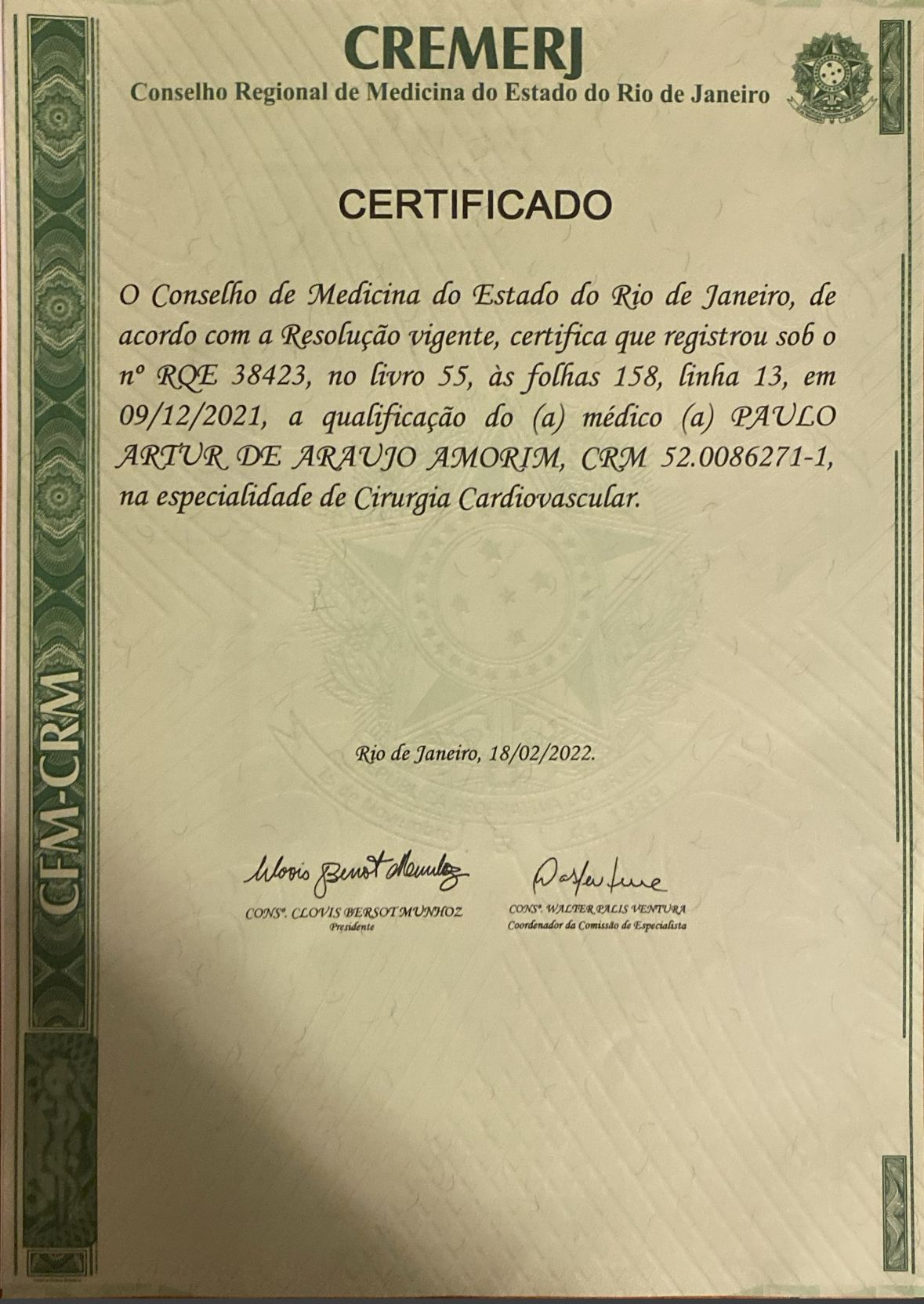 Número de registro: CRM RJ 862711 - RQE Nº: 38423