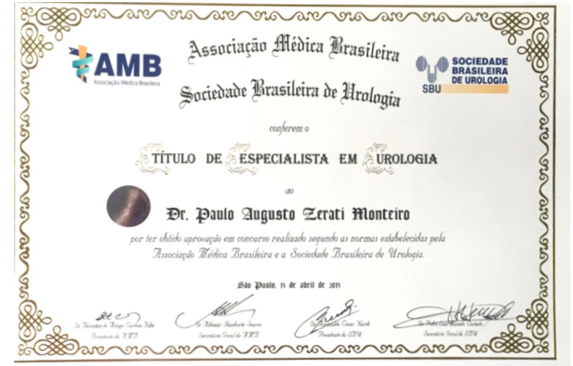 Quais são as principais especialidades de Paulo Augusto Zerati Monteiro?Paulo Augusto Zerati Monteiro é urologista. Te mostramos alguns dos serviços oferecidos pelo especialista graças à sua trajetória e vasta experiência: Retirada De Calculo De Pelve Renal Com Cateter, Circuncisão, Postectomia, Litotripsia, Cirurgia para cálculo renal, Tratamento Cirurgico Da Varicocele, Tratamento Cirurgico Da Incontinencia Urinaria Por Via Vaginal, Cistoscopia, Acompanhamento urológico , Colocacao De Cateter Duplo "J".