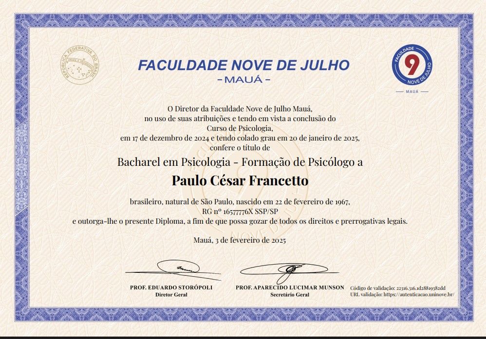 Eu estava com uma sensação muito pesada, mas quando saí do consultório me senti leve, feliz, o dr.Paulo é um excelente profissional, e me já ajudou logo na 1° consulta.