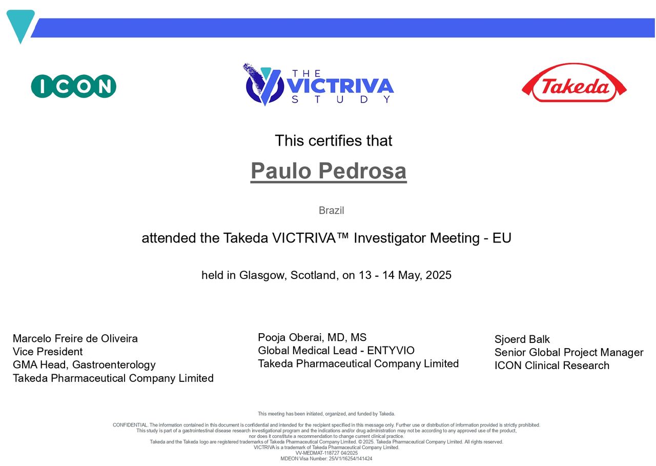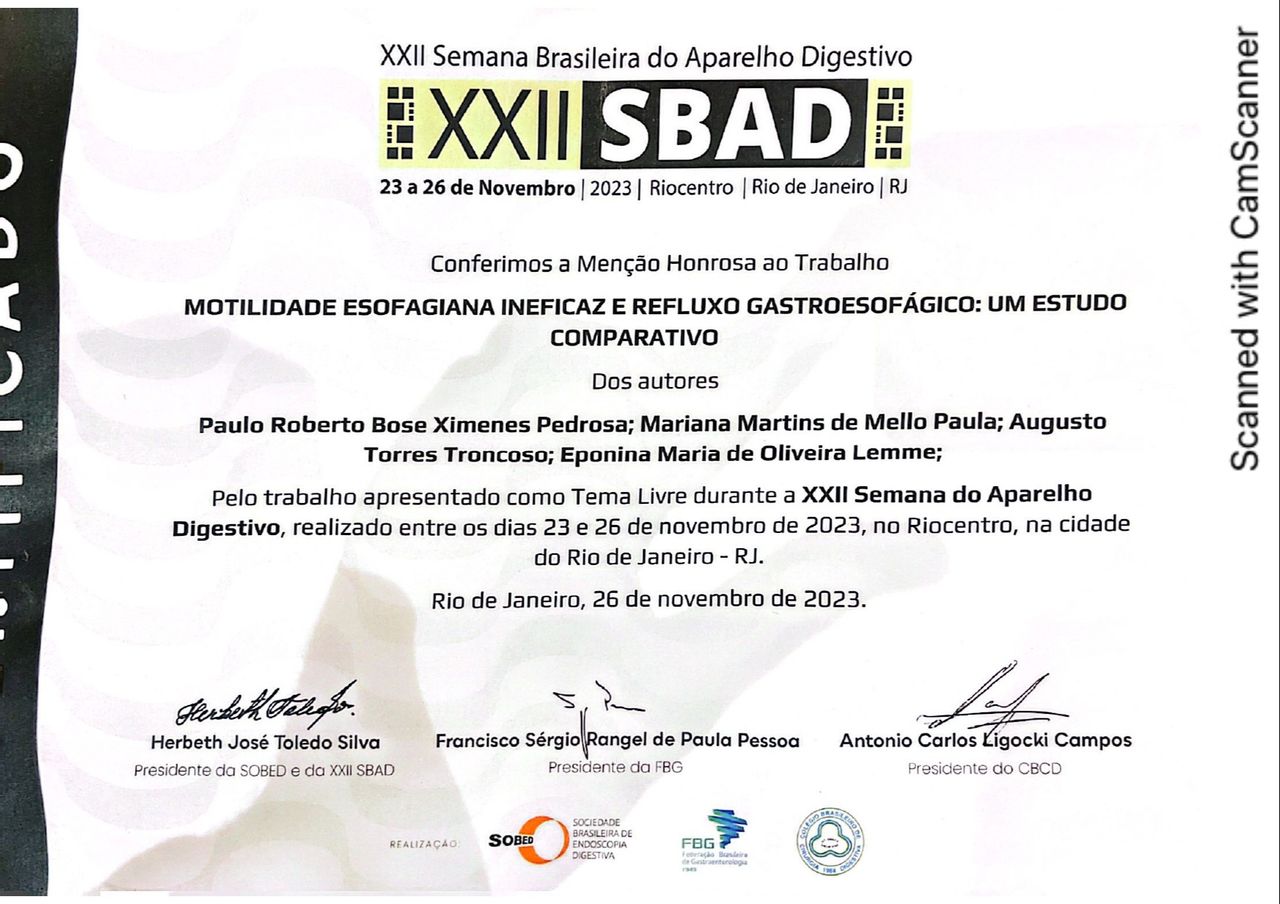 Médico gastroenterologista. Graduado pela Universidade do Estado do Rio de Janeiro (UERJ) em 2019; especialista em Clínica Médica (Residência Médica na UERJ 2021-2023) e especialista em Gastroenterologia (Residência Médica na UFRJ 2023-2025). Mestre pelo programa de Pós-Graduação em Ciências Médicas da Faculdade de Ciências Médicas (FCM-UERJ).