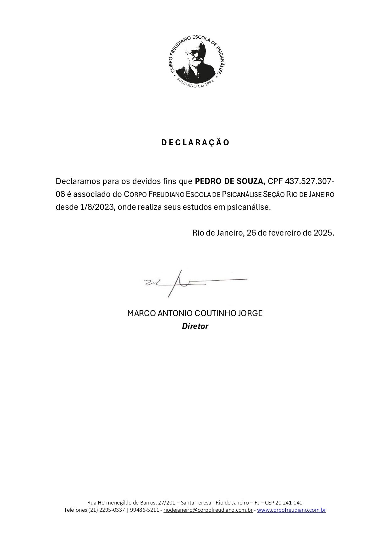 • Pedro de Souza - Psicanalista • •