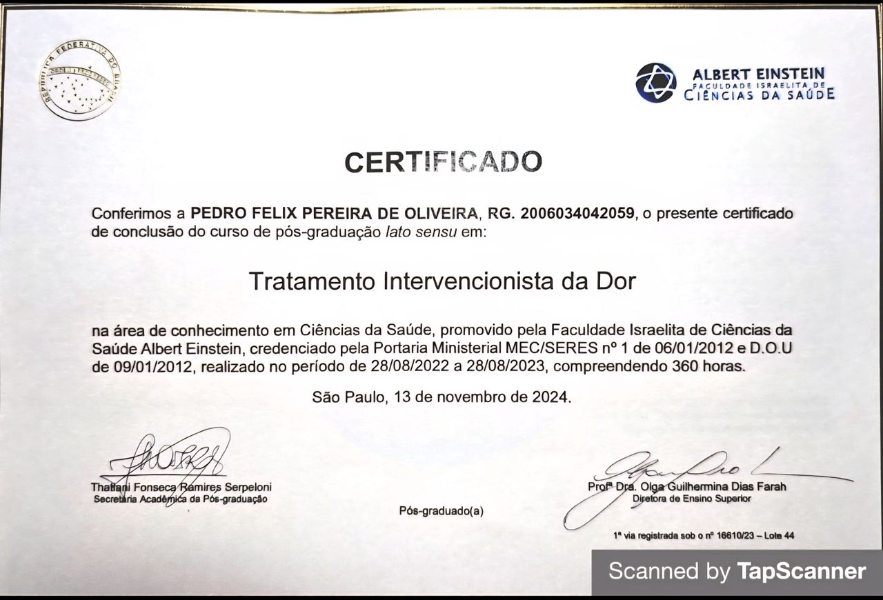 Dr. Pedro Félix é médico ortopedista e traumatologista, graduado pela Faculdade de Medicina de Juazeiro do Norte (FMJ) no Ceará. Fez residência em Ortopedia e Traumatologia pro Hospital Estadual de Sapopemba (HESAP) em São Paulo e é membro titular da Sociedade Brasileira de Ortopedia e Traumatologia (SBOT). Especializado em Artroscopia e Cirurgia do Joelho pro Centro Médico Kawano (CEMKA) e pós graduado em Tratamento Intervencionista da Dor pelo Hospital Israelita Albert Einstein. Utilizando o que há de mais avançado na medicina ortopédica e intervencionista da dor, baseando-se nos mais recentes artigos, tem o objetivo de proporcionar uma melhor qualidade de vida e melhores desempenhos em práticas esportivas a seus pacientes.