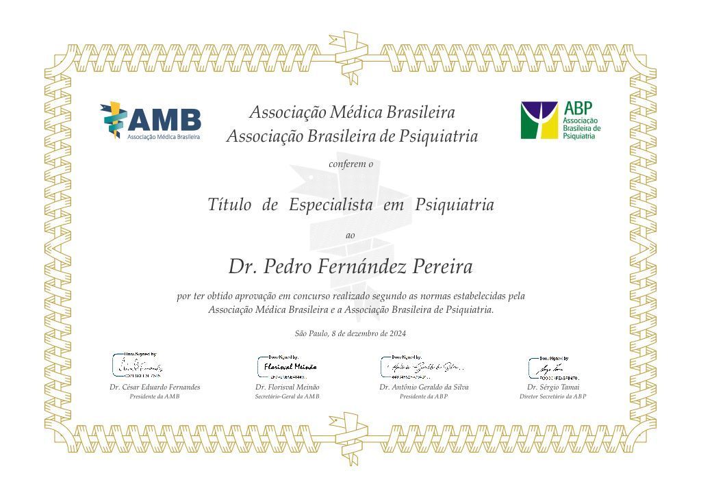 Escuta qualificada.Psiquiatra pela UFFPontual, transparente e confiável.
