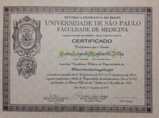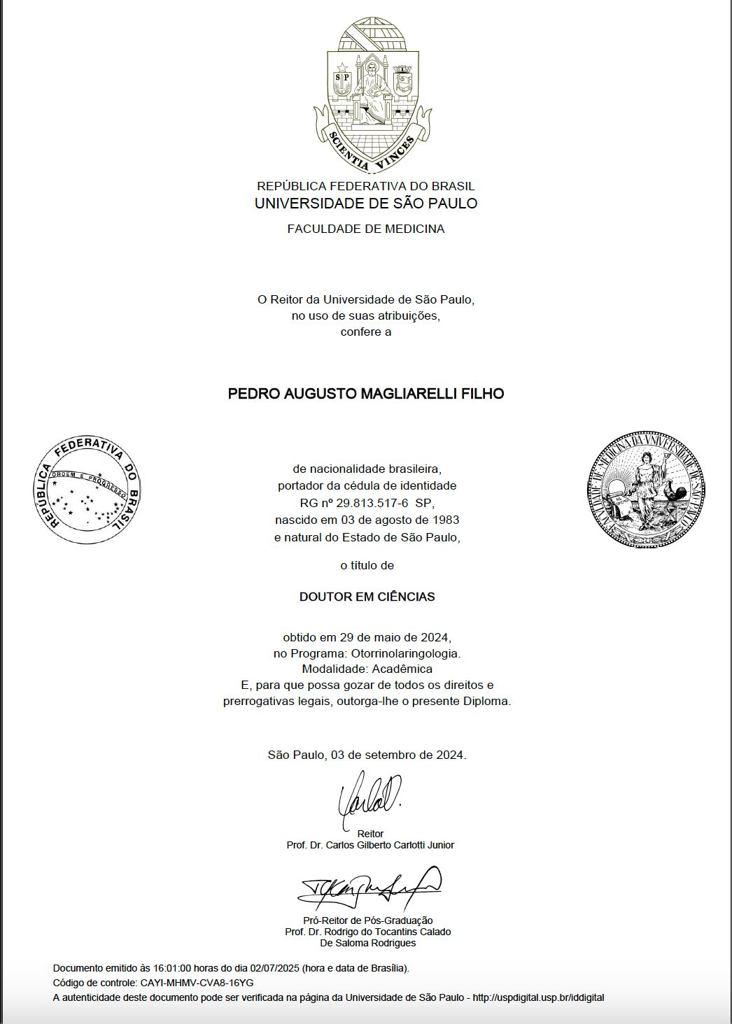 Doutor pela Universidade de São Paulo (USP)Medicina e Otorrinolaringologia pela USPCorpo Clínico do Einstein - Hospital Israelita