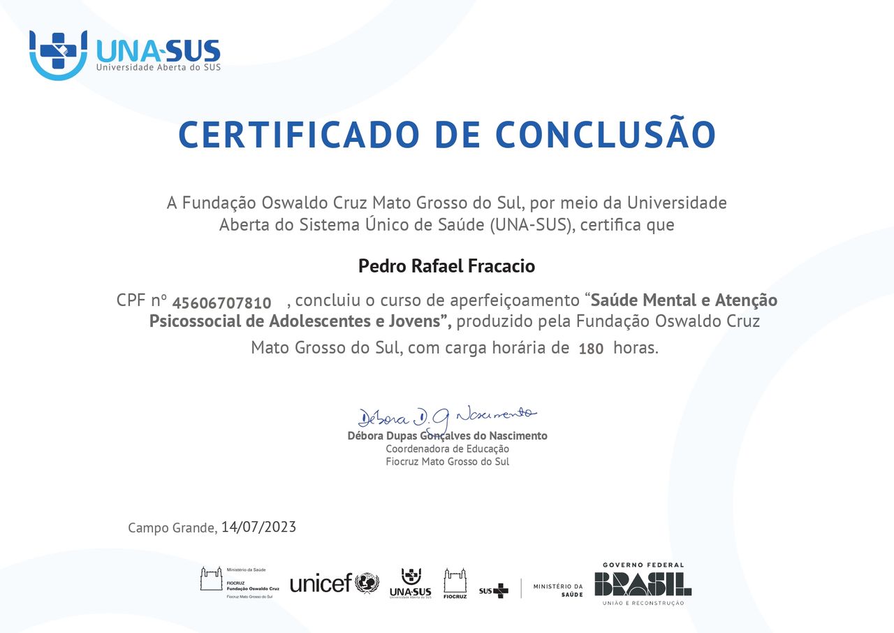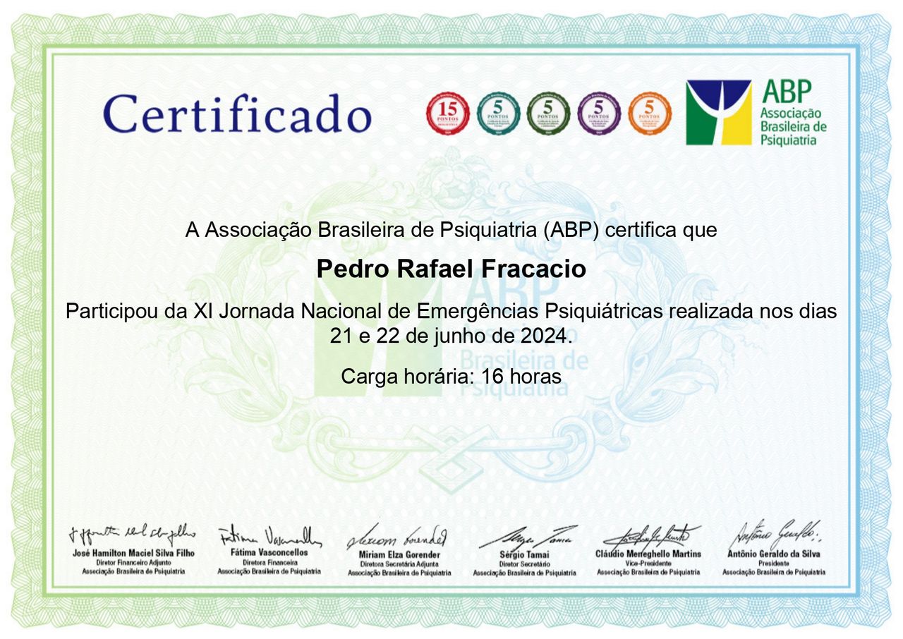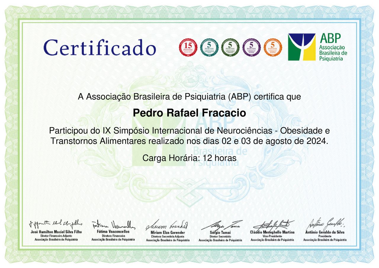 Quando poderia me consultar com Pedro Rafael Fracacio?Pedro Rafael Fracacio costuma ter horários disponíveis dentro da mesma semana ou para a semana seguinte. Verifique o calendário: você verá o primeiro horário disponível, atualizado em tempo real. Caso o horário sugerido não funcione para você, verifique outras datas. Agendar uma consulta é sempre imediato e gratuito.