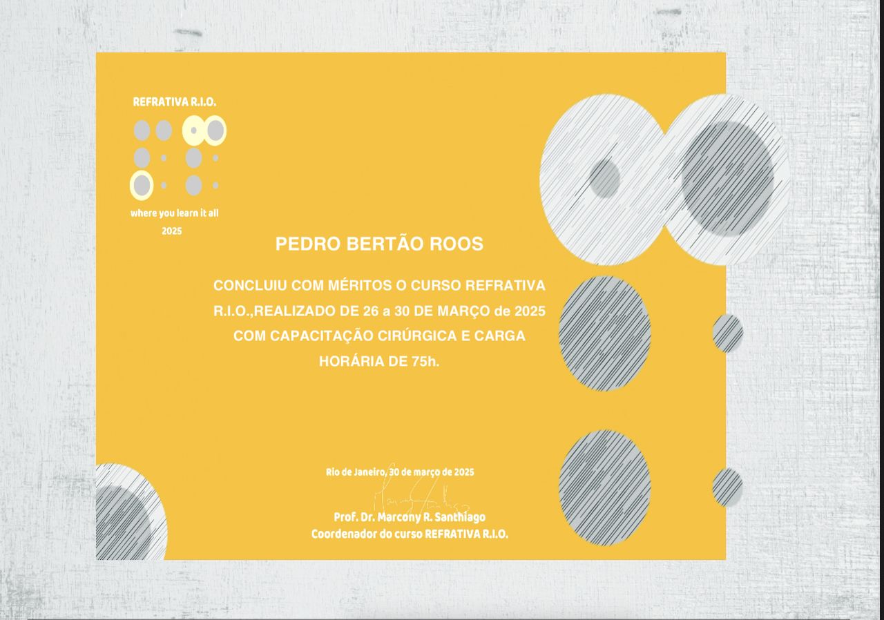 Vasta experiência em cirurgia oftalmológica, especialmente em cirurgia de catarata.