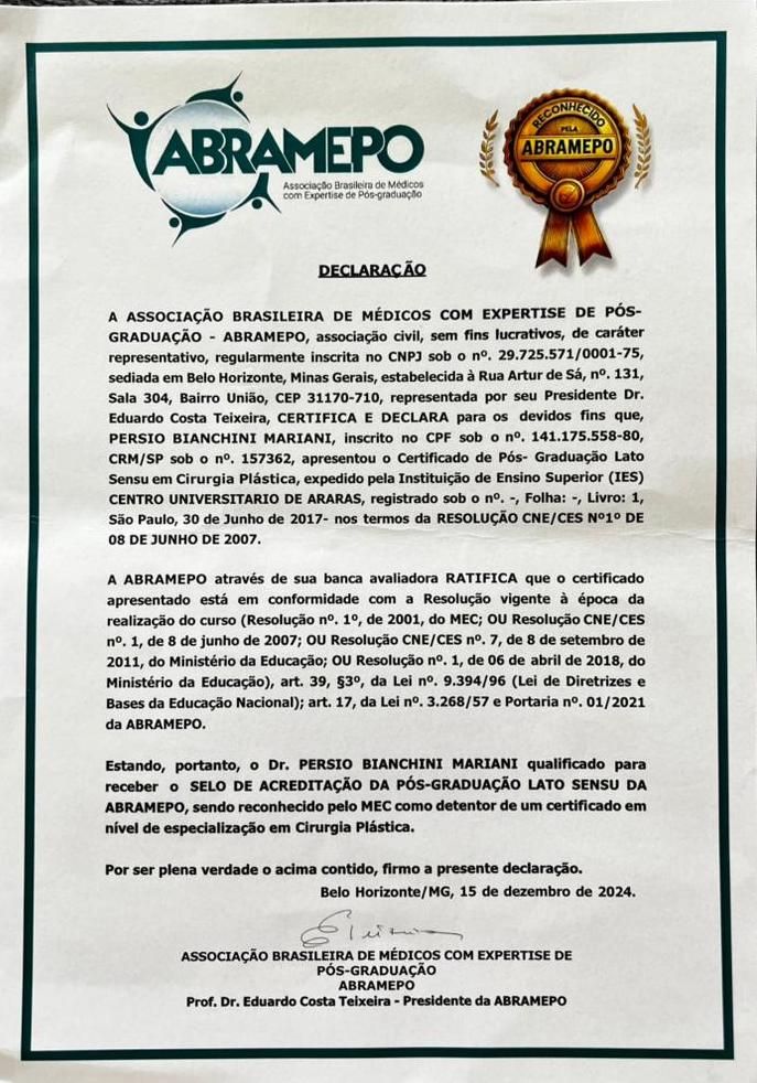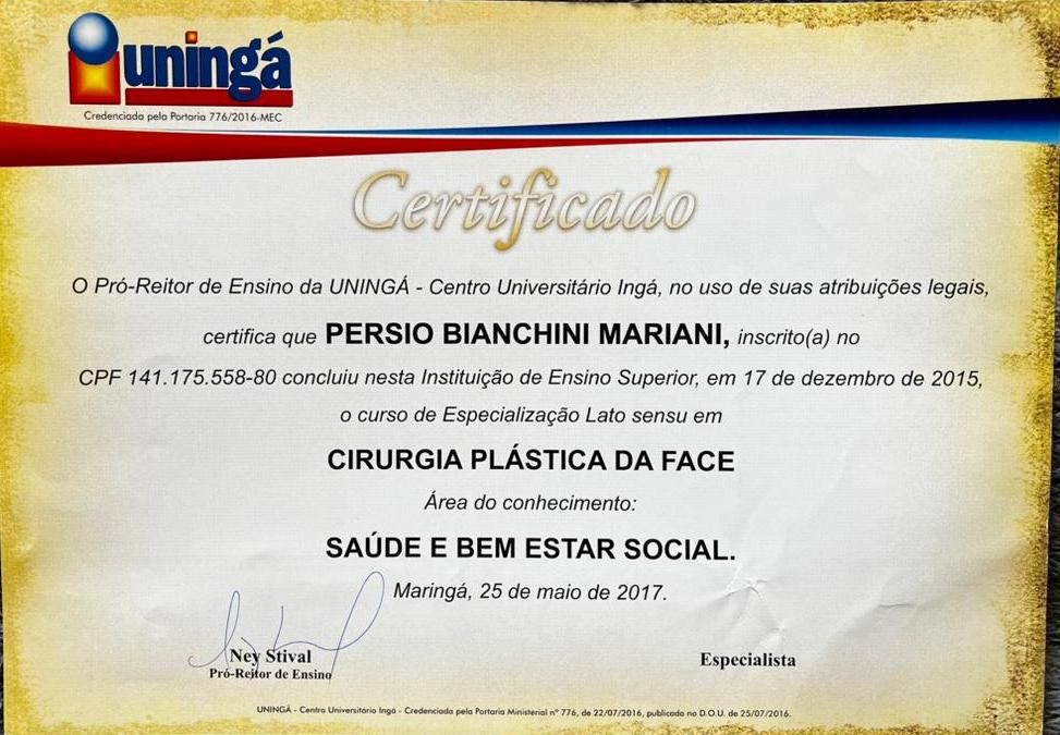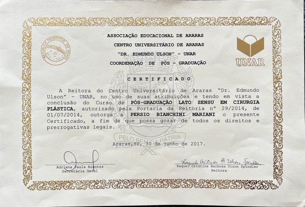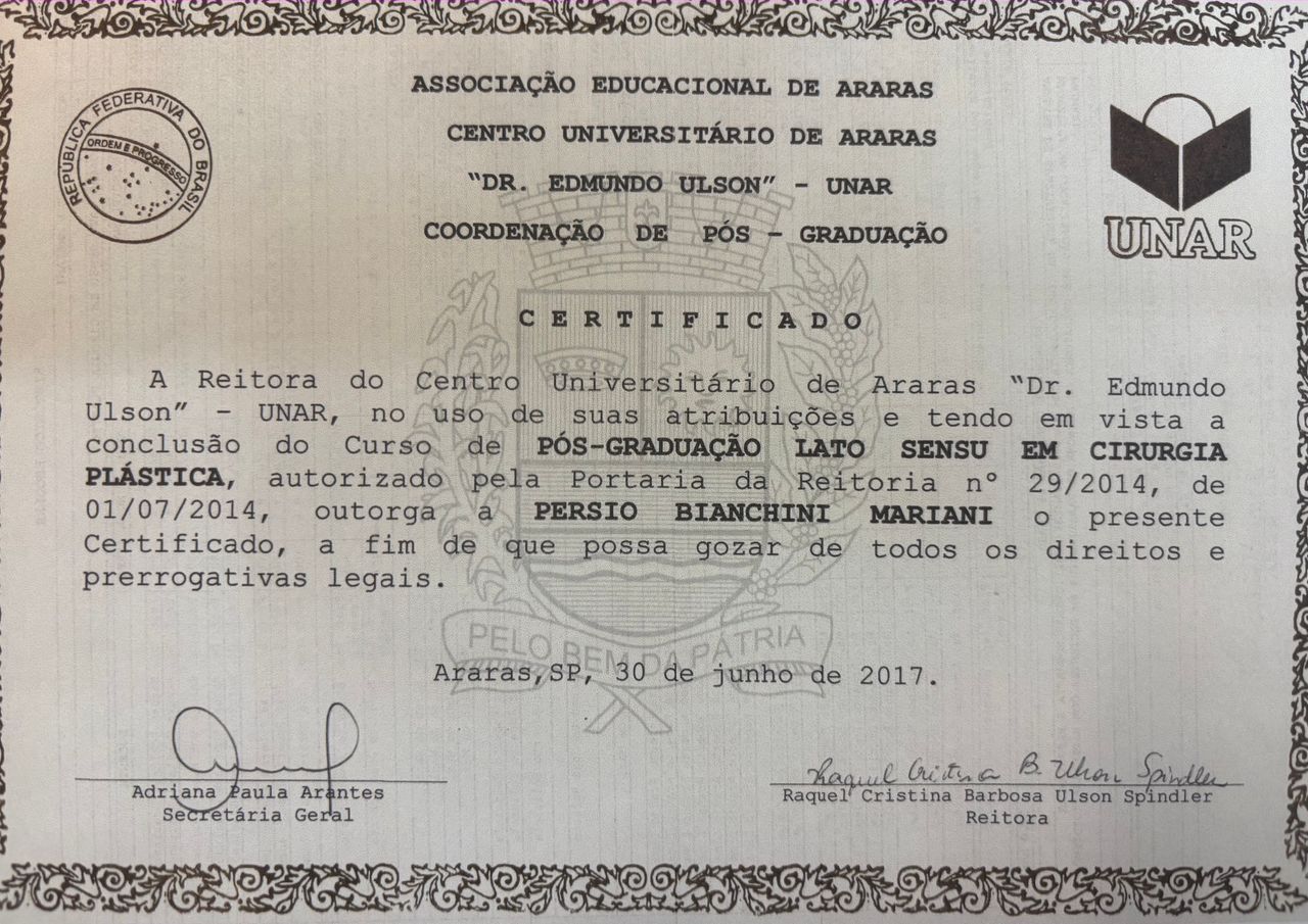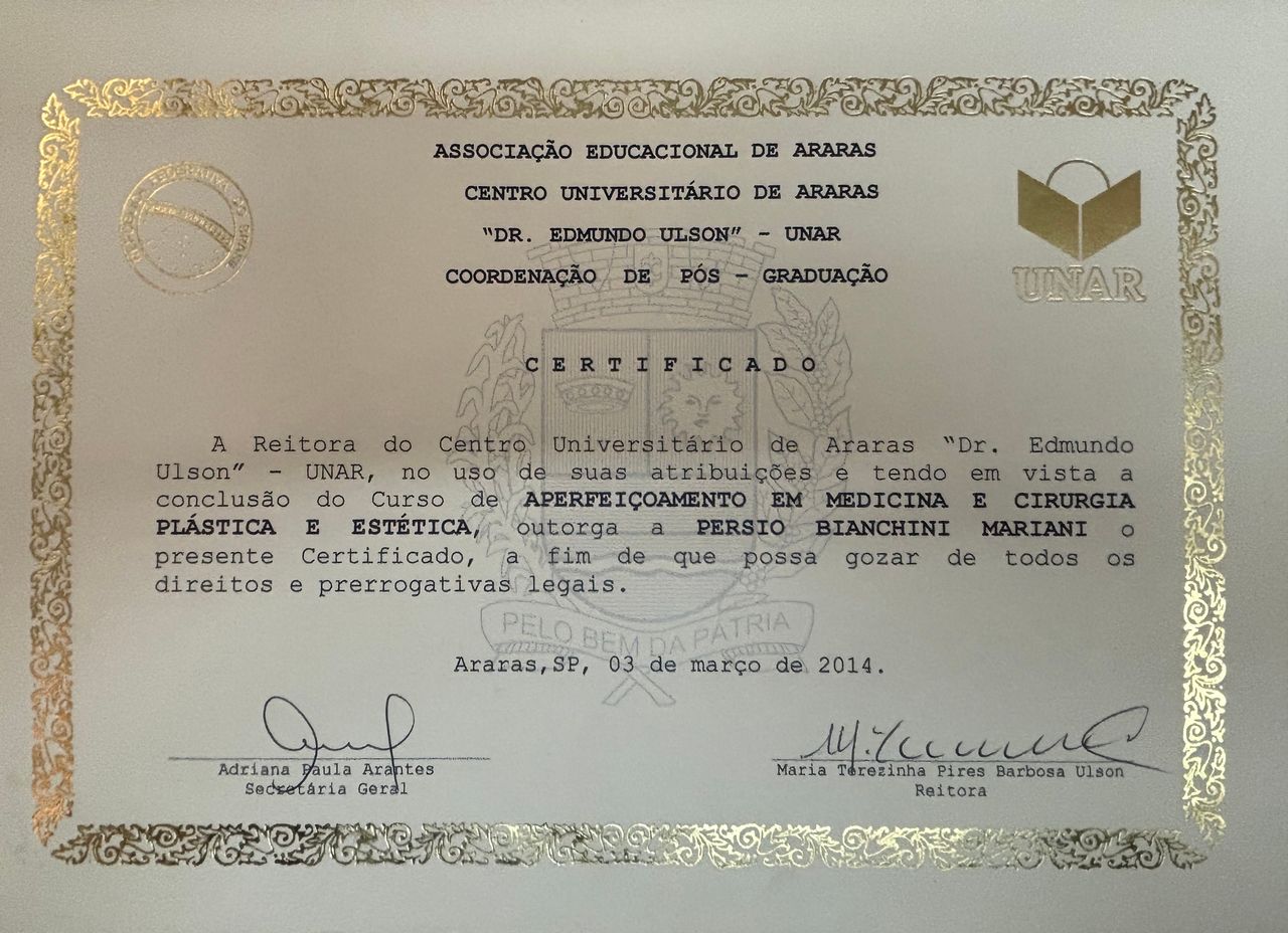 Após finalizar a segunda Universidade, estudei por 5 anos em duas pós graduações Lato Sensu em Cirurgia Plástica e Cirurgia Plástica Facial.