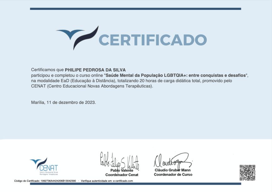 Leva anos para encontrar um psicólogo que realmente me escutasse e me ajudasse de forma eficaz, e o Philipe é esse profissional. Ele é extremamente atencioso e pontual. Além disso, o Philipe me fez enxergar a verdadeira e essencial importância de manter minhas sessões de terapia semanalmente. Sinto-me grato e recomendo-o fortemente!
