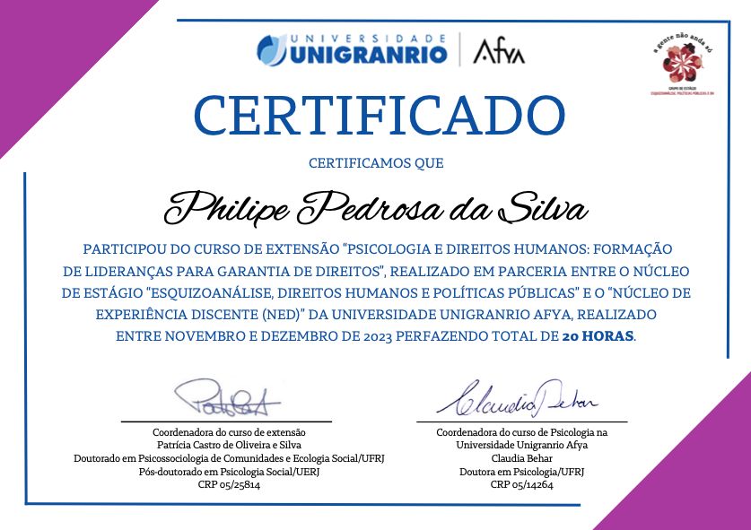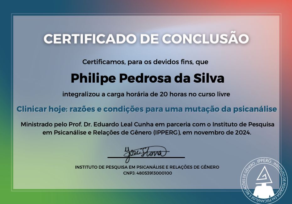 Sou psicólogo clínico e psicanalista, atualmente em especialização em Psicanálise e Relações de Gênero: clínica, ética e política pelo IPPERG. Desde a graduação, venho atuando como pesquisador em temas ligados à Psicologia e Direitos Humanos, com produções apresentadas em congressos acadêmicos no Rio de Janeiro. Essa trajetória reafirma meu compromisso com uma escuta ética, crítica e atenta à diversidade.