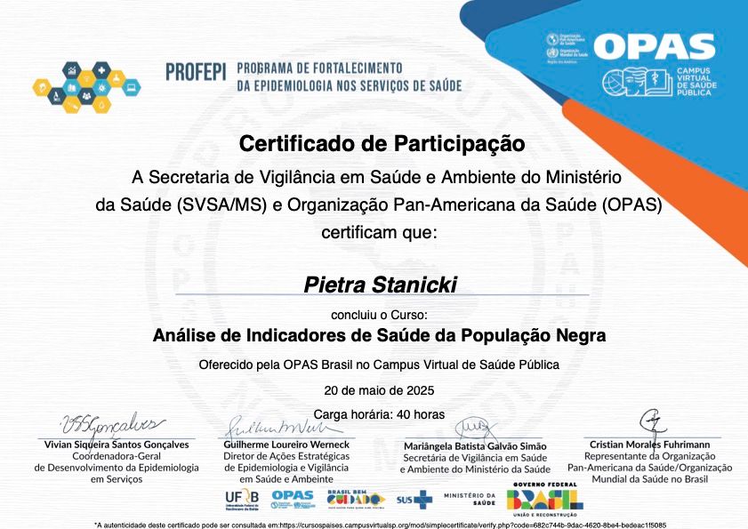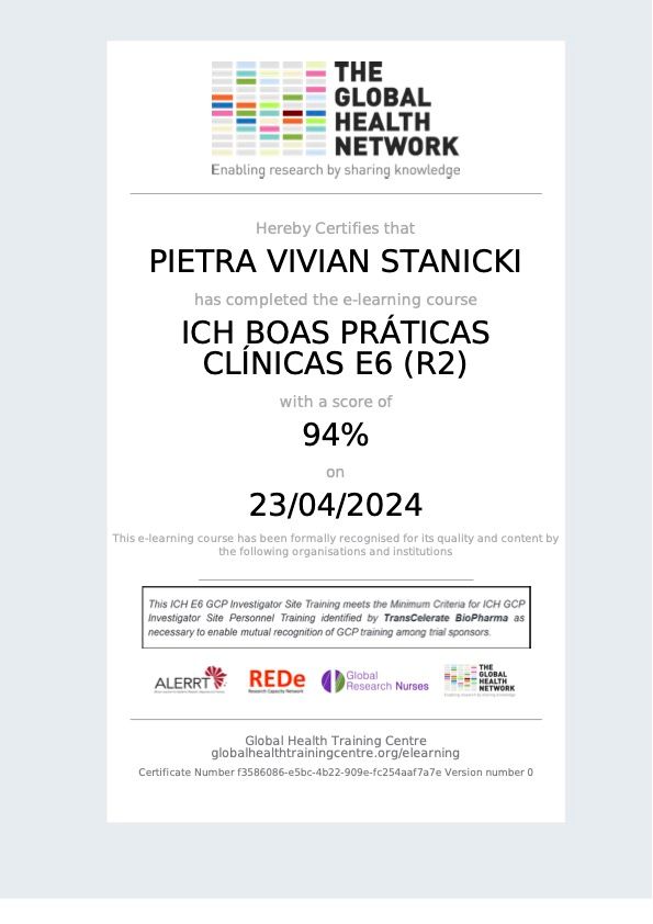 Sou a Dra. Pietra Stanicki, formada em Medicina pela Universidade de Buenos Aires, com diploma revalidado pela UNESP, Mestre em Doenças Tropicais pela mesma instituição. Sou fundadora da CARE THERE, empresa de telemedicina que já atendeu pacientes de mais de 20 países diferentes, e atuo como prestadora credenciada em planos de saúde dos Estados Unidos.