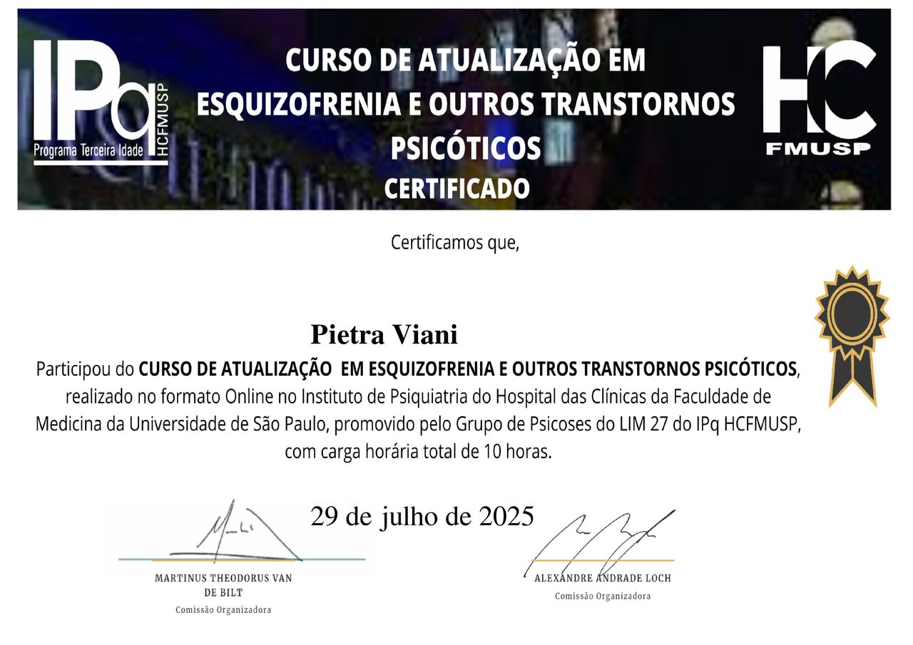 Quando poderia me consultar com Pietra Viani?Pietra Viani costuma ter horários disponíveis dentro da mesma semana ou para a semana seguinte. Verifique o calendário: você verá o primeiro horário disponível, atualizado em tempo real. Caso o horário sugerido não funcione para você, verifique outras datas. Agendar uma consulta é sempre imediato e gratuito.