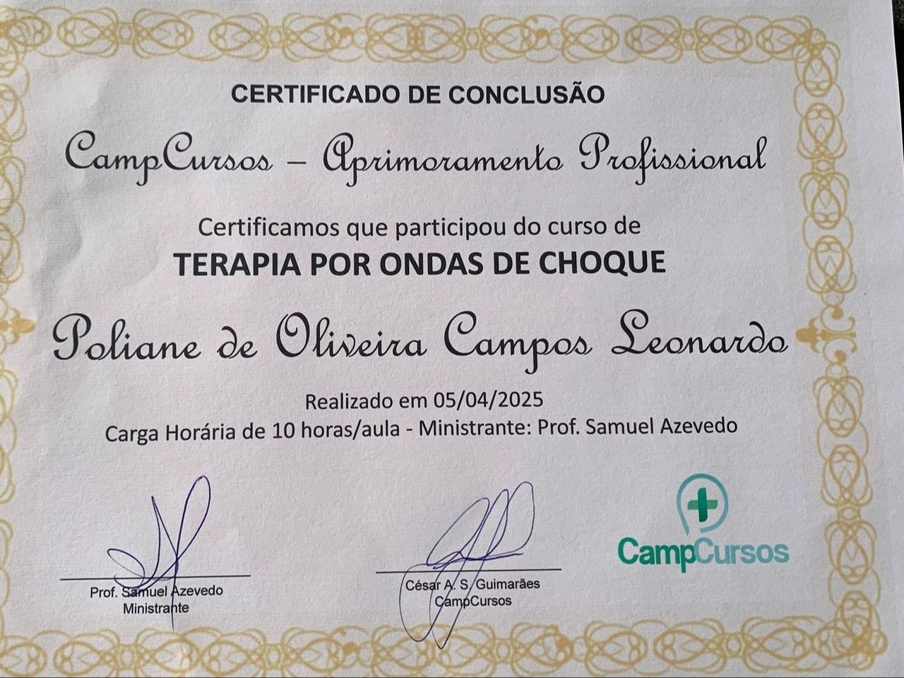 Quais são as principais especialidades de Poliane Campos?Poliane Campos é fisioterapeuta. Te mostramos alguns dos serviços oferecidos pelo especialista graças à sua trajetória e vasta experiência: Consulta de fisioterapia, Sessão de terapia por ondas de choque, Teleconsulta.