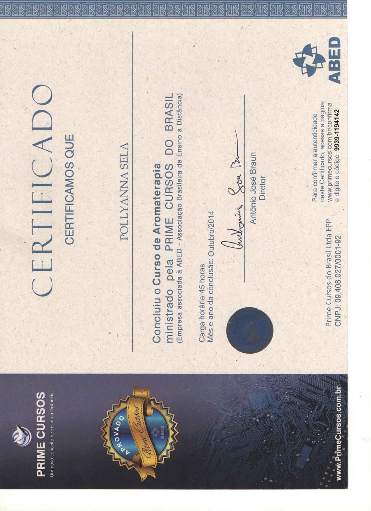 Número de registro: Certificado Apresentado