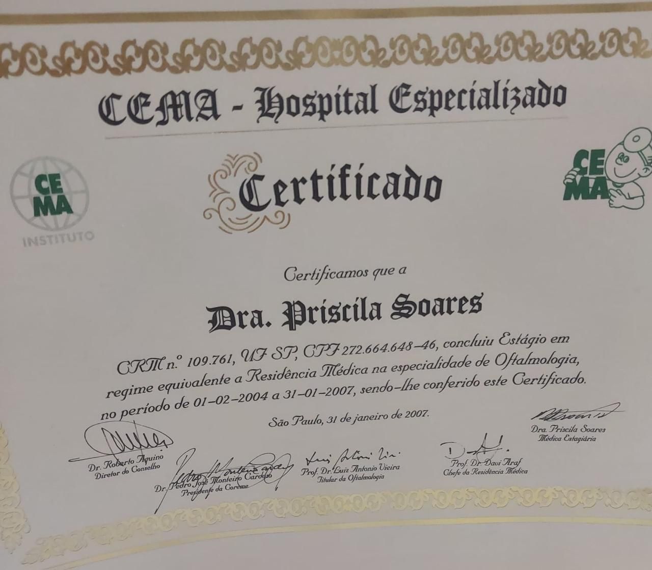 Subespecialização em Glaucoma pelo Hospital Cema,