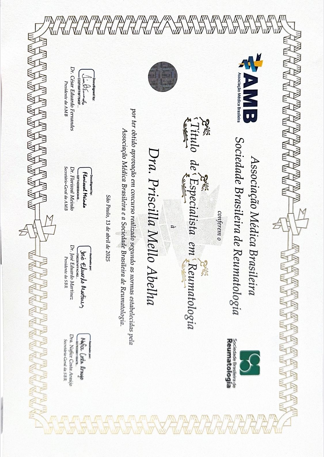 Seja bem- vindo (a) ao meu perfil. Sou médica formanda desde 2007, especialista em Clínica Médica e Nutrologia, com residência em pelo Hospital Universitário Pedro Ernesto (RJ) e pós graduação pela ABRAN. Durante todos os meus anos de trabalho, atuei em diversos centros de terapia intensiva e clínica geral, sendo responsável pelo manejo de doentes de alta complexidade. O manejo desses pacientes aliado à nutrologia, me permitiu ter um maior conhecimento dos impactos do estilo de vida sobre as doenças auto imunes. Encantada por essa área de atuação, optei por aprofundar minha formação, realizando por graduação em reumatologia (SP) e ultrassonografia articular, para oferecer um tratamento ainda mais completo e eficiente.