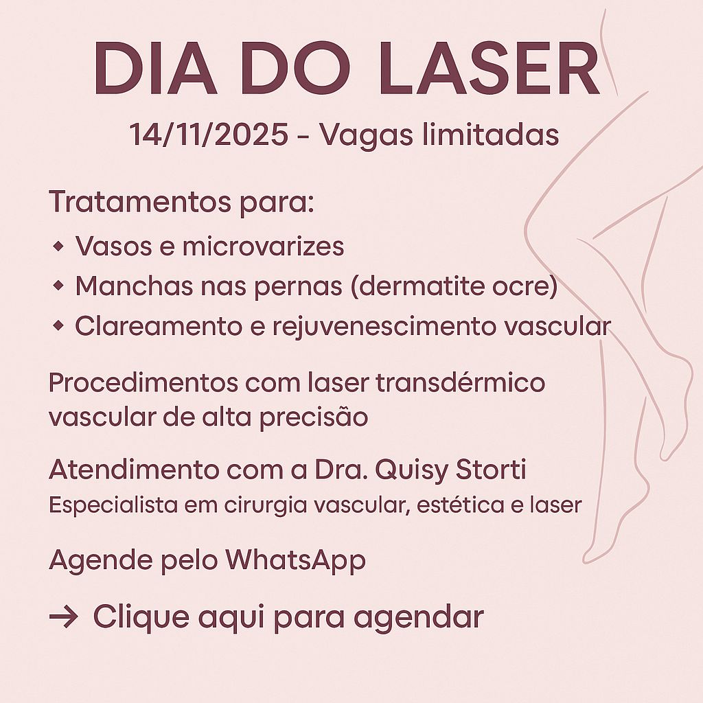 A Dra.Quisy é uma profissional incrível! Estou realizando com ela o tratamento vascular com laser transdérmico e aplicações para varizes, e desde o início me impressionou o cuidado e a atenção em cada detalhe.