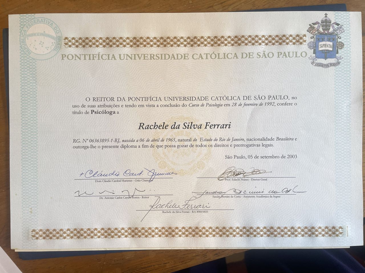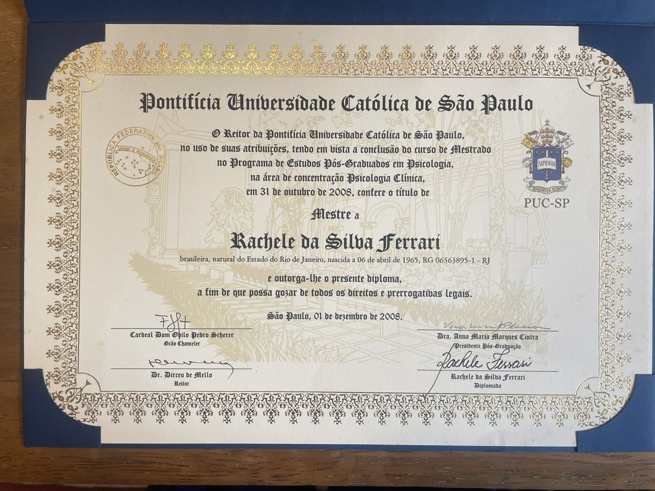 Absolutamente descrente de encontrar alternativas, anos consumidos em tentativas. Fui acompanhar um amigo no lançamento de um dos livros da psicanalista, conheci Dra Rachele Ferrari. E escutei o que nunca tinha escutado. Técnica, domínio. Um comportamento profundamente empático com o sofrimento humano. Entendi que para me destravar de um estado de paralisia, aquela sensação de vida desperdiçada e me recuperar, soterrado de sentimentos que não tinha mais nenhum controle, não seria nada trivial. Com seu ouvido atento me mostrou um nivel de compreensão e sagacidade, que está me devolvendo a mim mesmo. É um trabalho longo, porém… é a minha vida. mas agora em boas mãos.