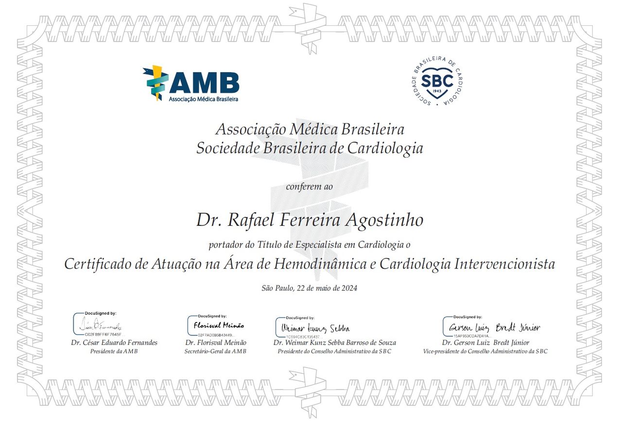 Quais são as principais especialidades de Rafael Agostinho?Rafael Agostinho é cardiologista pediátrico. Te mostramos alguns dos serviços oferecidos pelo especialista graças à sua trajetória e vasta experiência: ECG (eletrocardiograma), Ecocardiograma, Consulta cardiológica Pediátrica, Investigação de sopros cardíacos, Avaliação do risco cirúrgico, Parecer cardiológico para atividade física, Consulta Cardiologia Pediátrica, Ecocardiograma infantil.