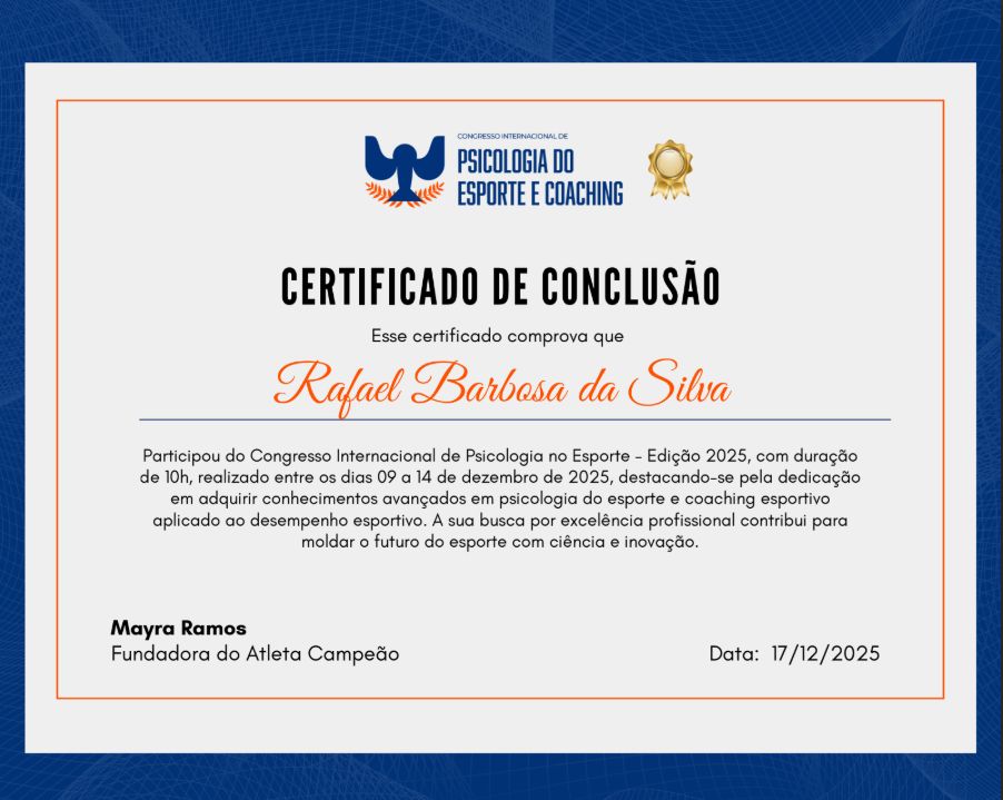 Olá! Sou Rafael Barbosa, psicólogo com atuação na clínica e na psicologia do esporte!