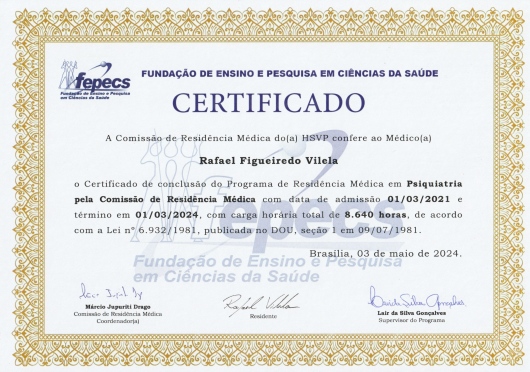 Médico formado pela ESCS - Escola Superior de Ciências da Saúde, também da SESDF (2017).