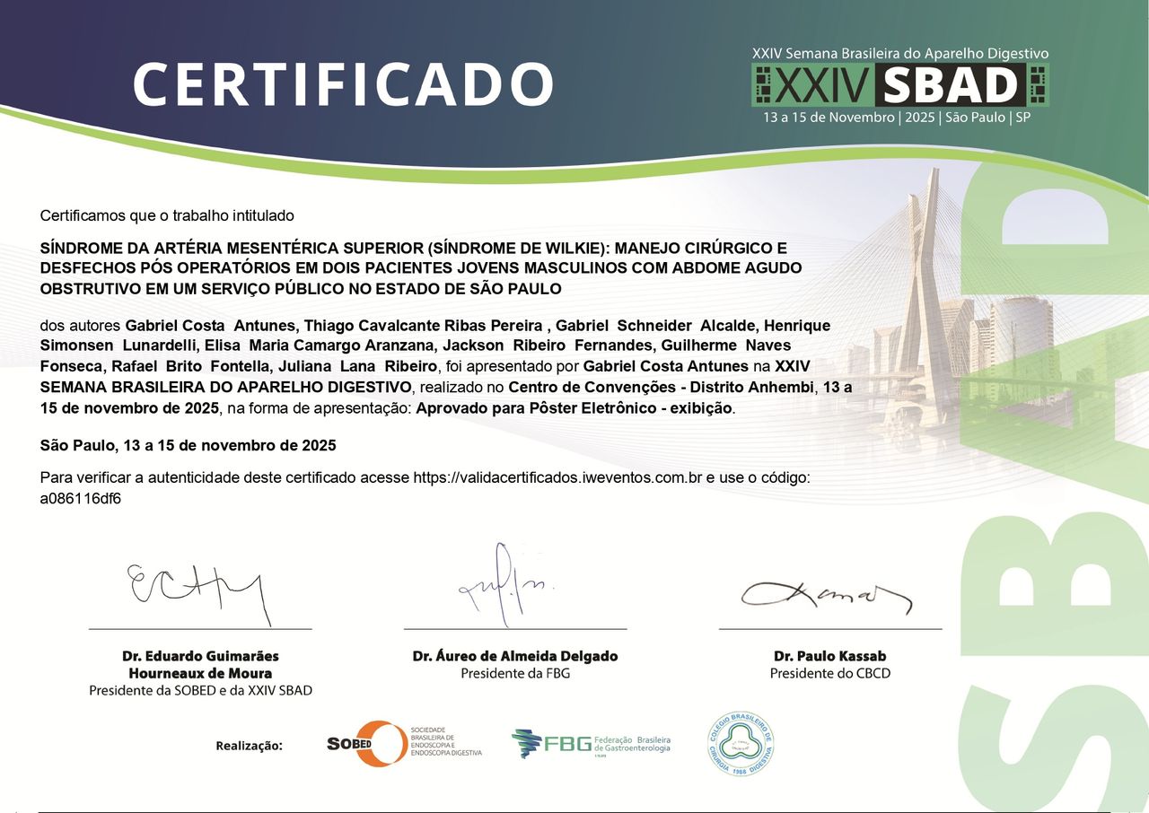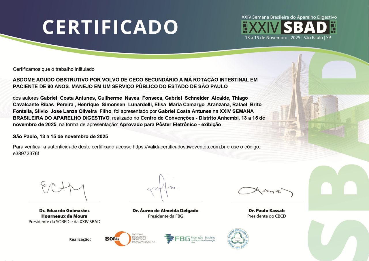 Graduando em Cirurgia Geral pelo Hospital municipal de Barueri 2023 - 2026