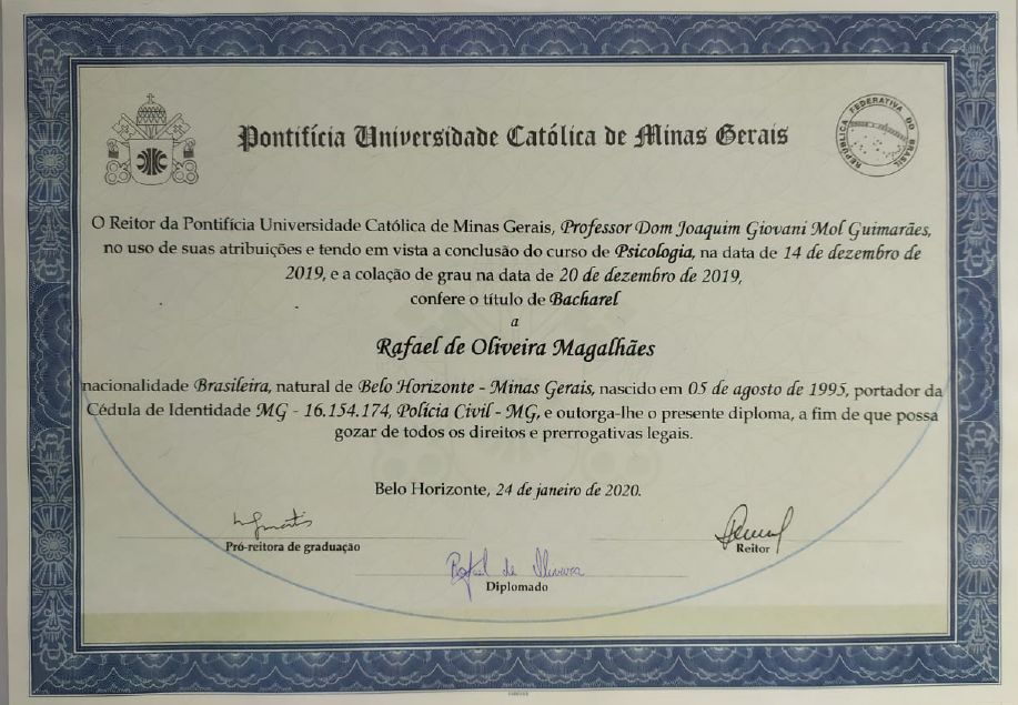 Psicólogo formado pela PUC Minas (ênfase clínica)