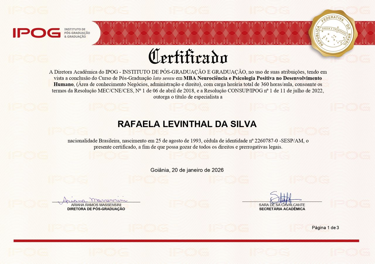 Quando poderia me consultar com Rafaela Levinthal?Rafaela Levinthal costuma ter horários disponíveis dentro da mesma semana ou para a semana seguinte. Verifique o calendário: você verá o primeiro horário disponível, atualizado em tempo real. Caso o horário sugerido não funcione para você, verifique outras datas. Agendar uma consulta é sempre imediato e gratuito.