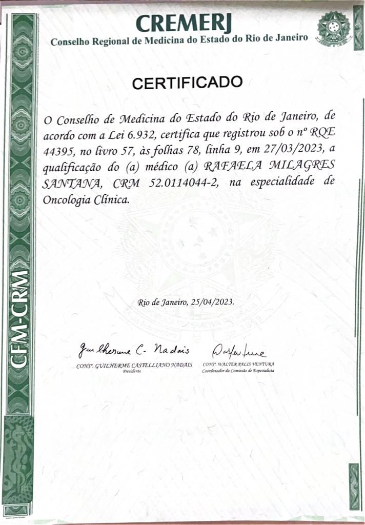 Número de registro: CRM RJ 1140442 | RQE Oncologista Nº: 44395