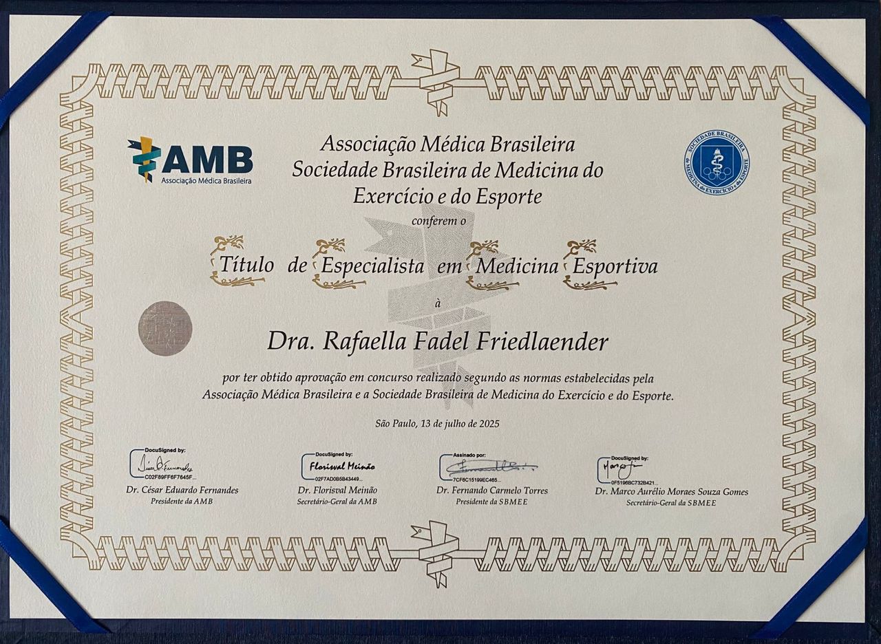 Atuo como Médica do Exercício e do Esporte, certificada pela Sociedade Brasileira de Medicina do Exercício e Esporte e acompanho crianças, adolescentes e adultos que buscam melhorar desempenho, saúde, qualidade de vida e prática segura de atividade física.