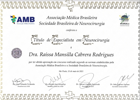 Especializaçao em Neurocirurgia Pediátrica (IFF)Aperfeiçoamento em Neurocirurgia Funcional (ABN)Os pacientes me avaliam como pontual e empática.