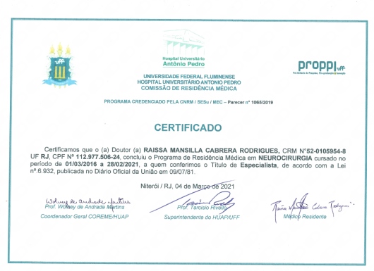 Número de registro: CRM RJ 1059548 RQE Nº: 35813 CRM MG 67762 RQE Nº: 63823