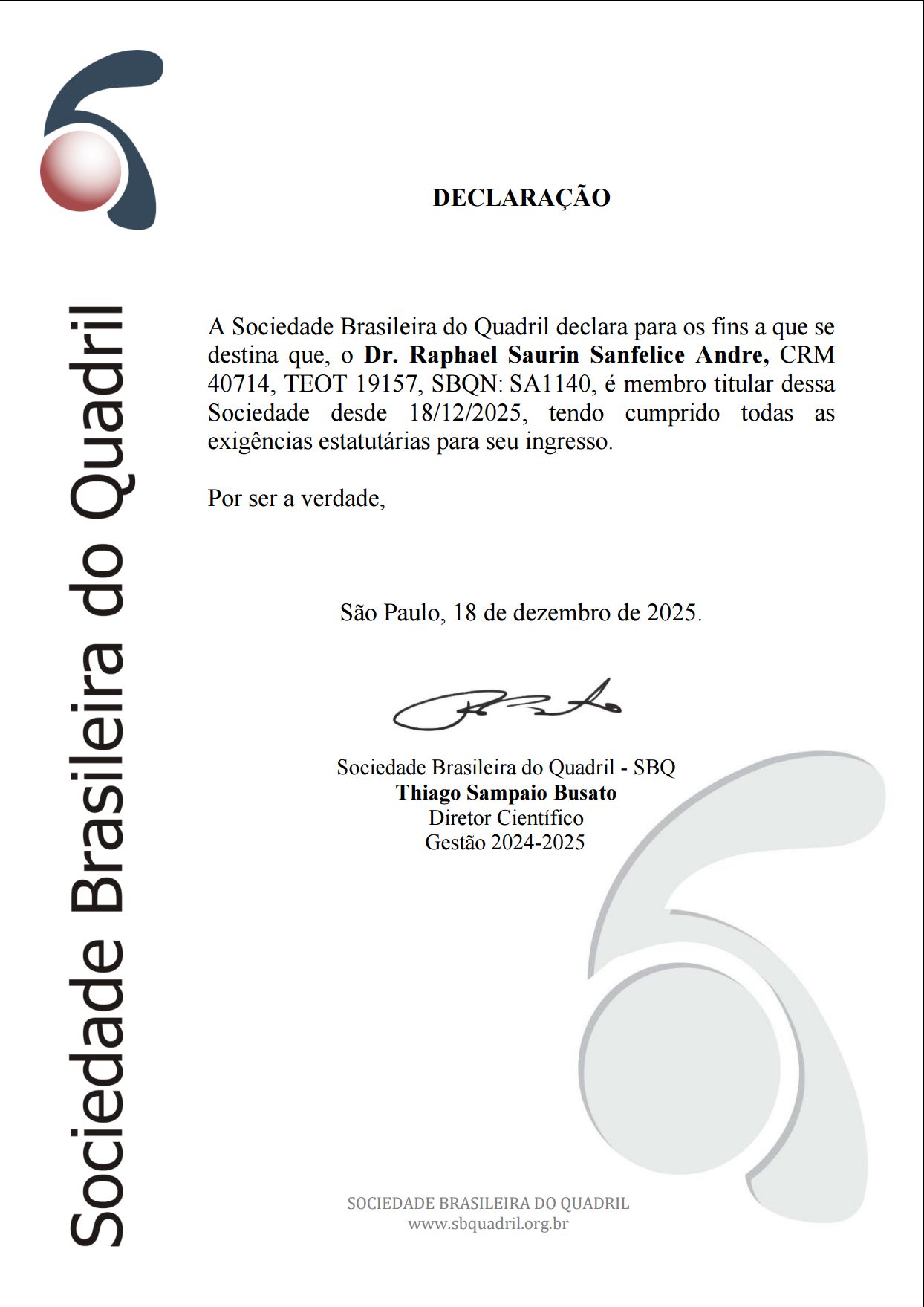 Sou especialista em cirurgia do quadril, realizo infiltração intra articular de quadril, joelho, ombro, cotovelo, punho para síndrom do tunel do carpo e dedo em gatilho