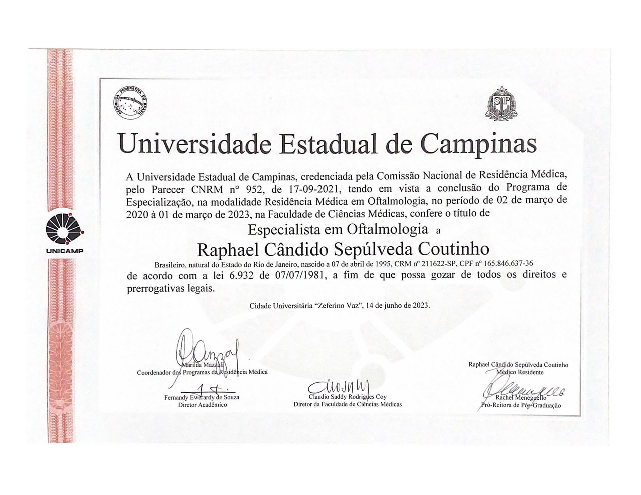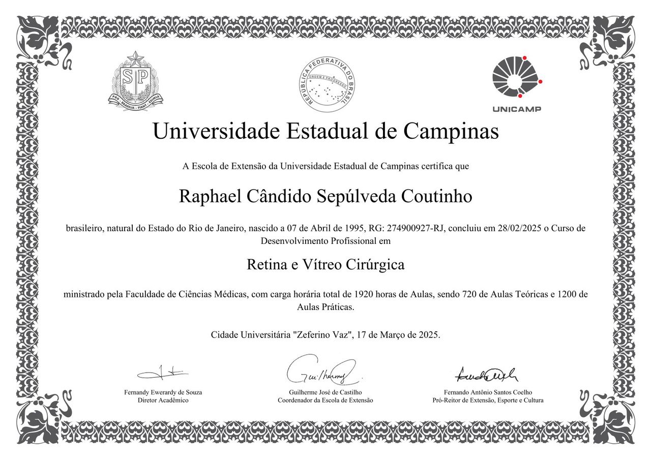 Fellowship de Retina, Vítreo e Úvea - Clínico e Cirúrgico - HC UNICAMP.