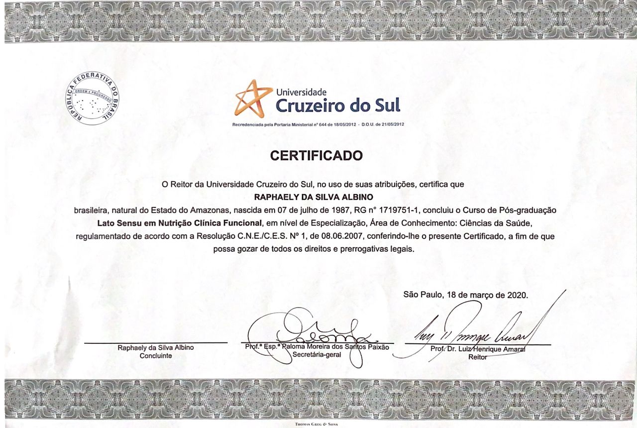 Pós-graduada em Nutrição Clínica Funcional pela VP Centro de Nutrição Funcional/UNICSUL - SP, 2019
