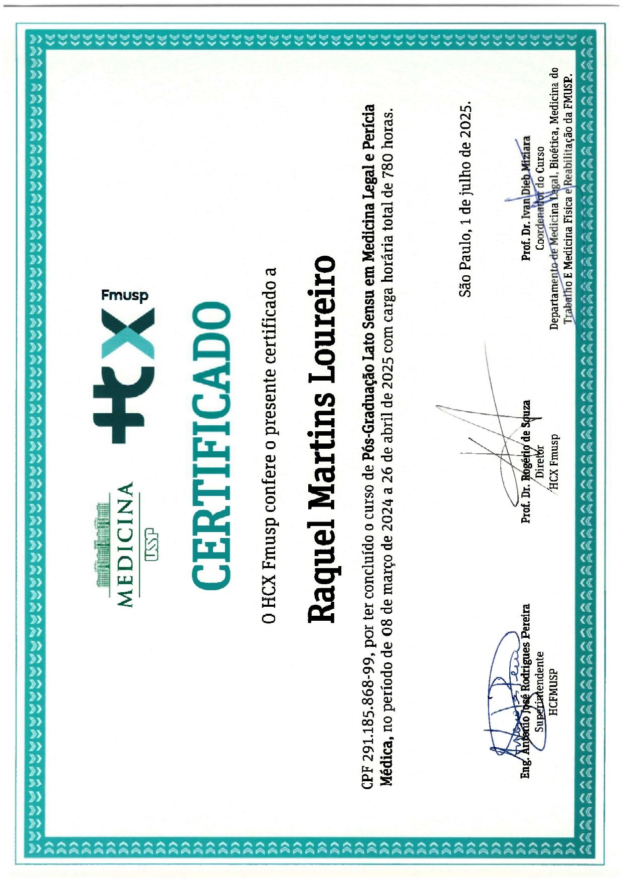 Pós-graduada em Medicina Legal e Perícias Médicas pela USP, realizo laudos e pareceres médicos.