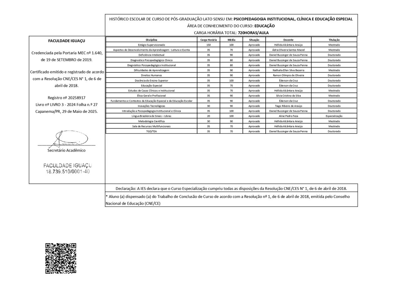 Número de registro: certificado apresentado