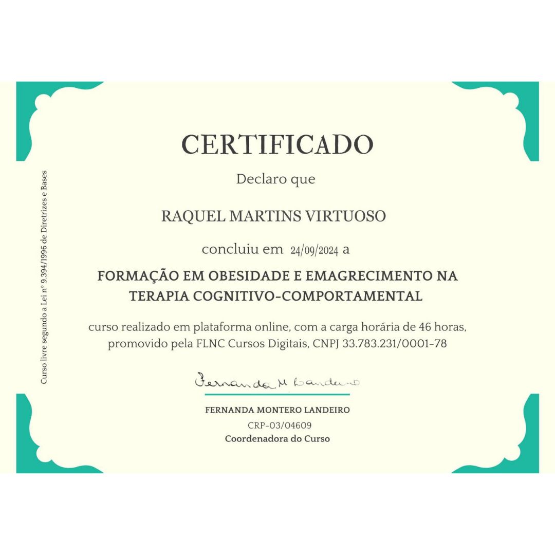 Também possuo formação em Obesidade e Emagrecimento pelo Protocolo de Oxford.