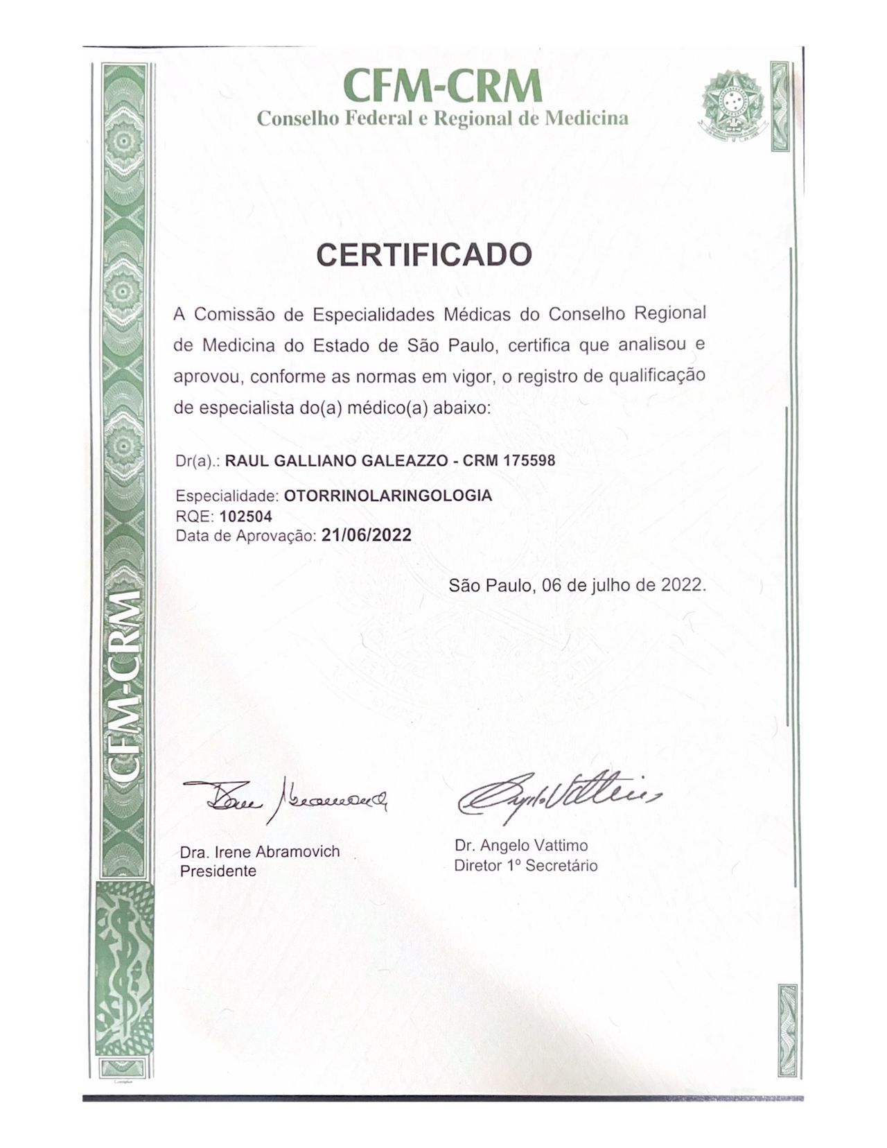 Número de registro: CRM SP 175598 RQE 102504