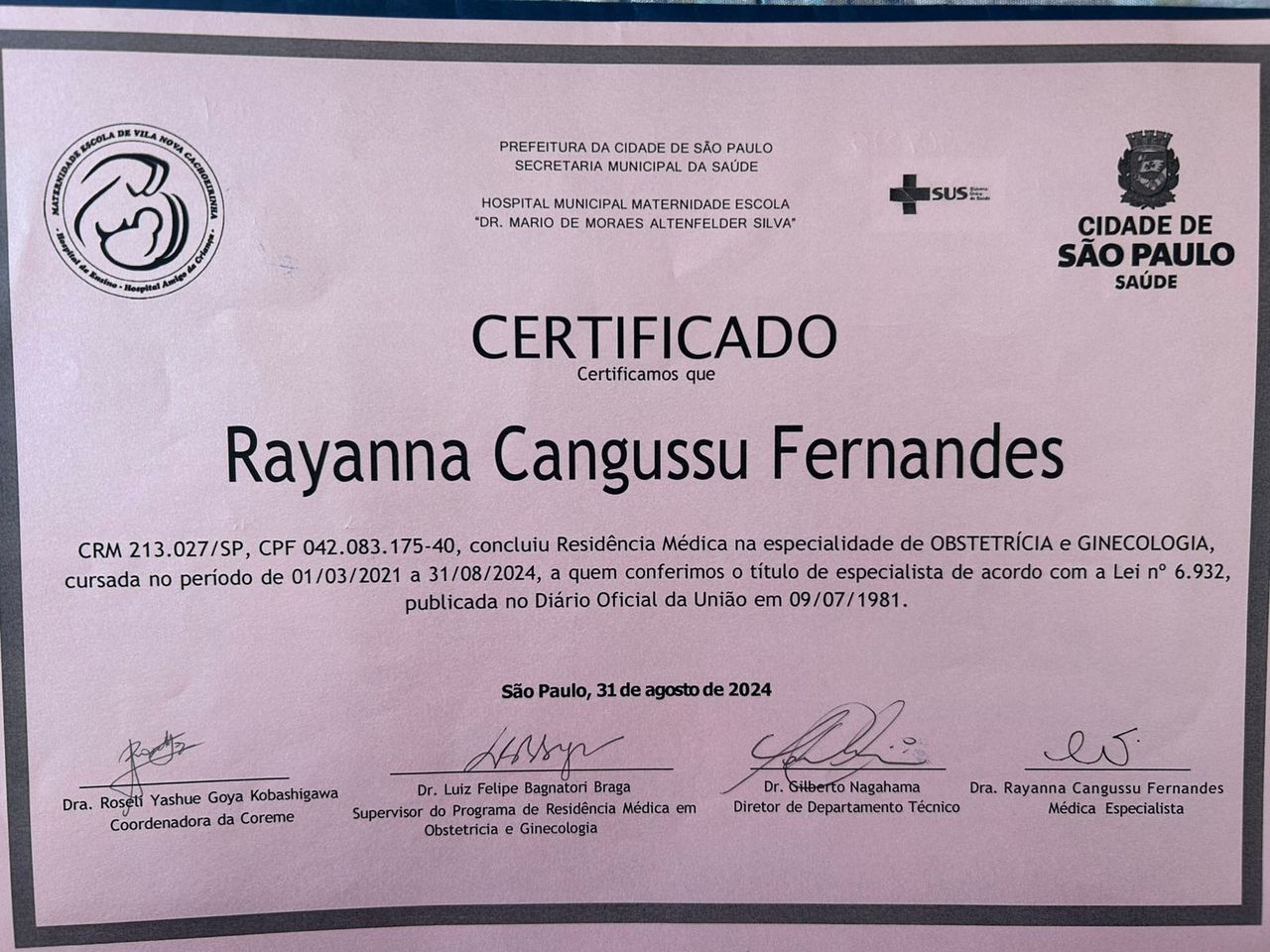 Por isso, em 2024 concluí minha residência médica em Ginecologia e Obstetrícia numa das maiores Maternidades de Gestação de Alto Risco do Brasil, a Maternidade Escola de Vila Nova Cachoeirinha, na cidade de São Paulo.