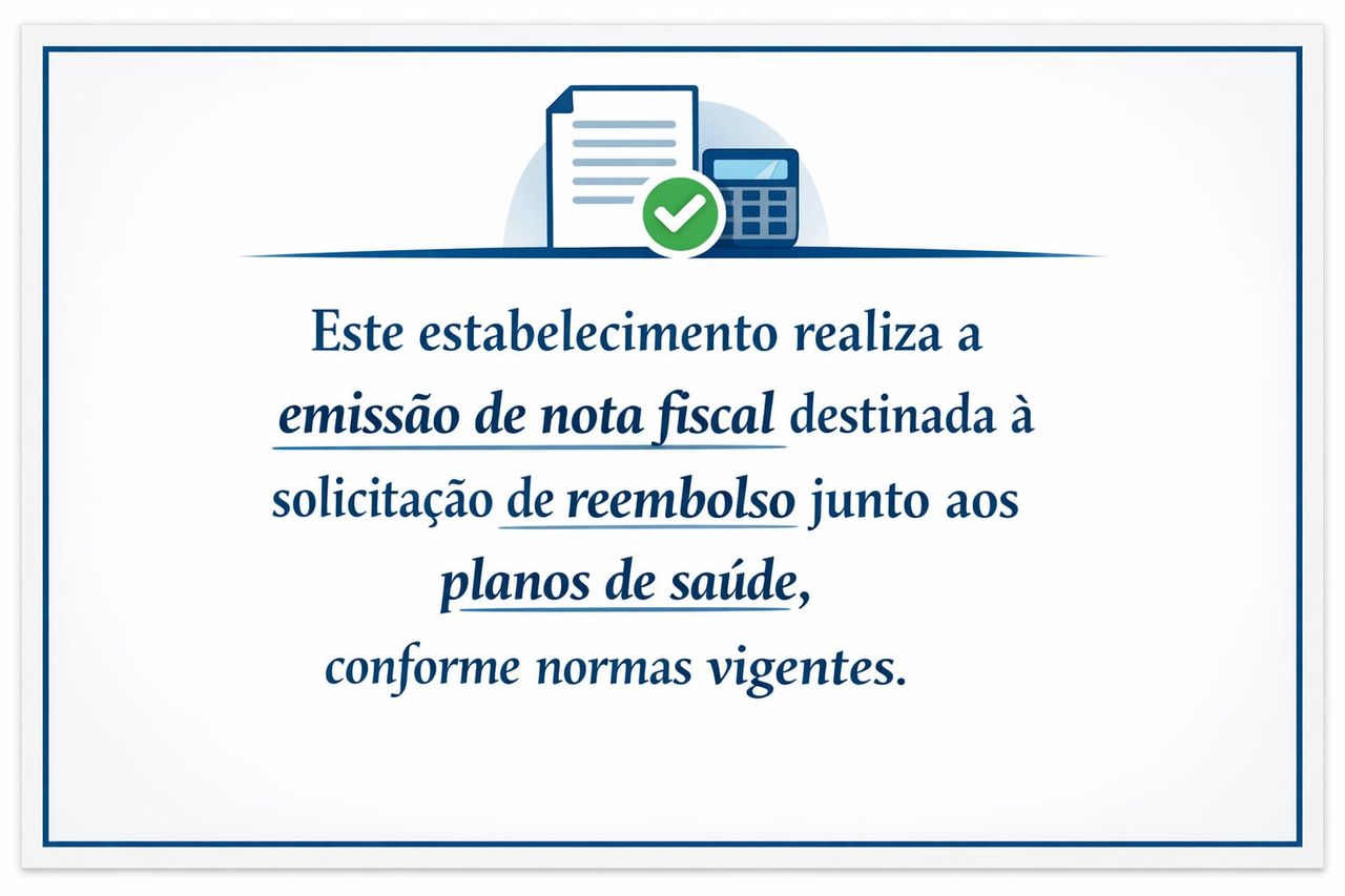 Este estabelecimento realiza a emissão de nota fiscal para fins de reembolso em planos de saúde. Informamos que a solicitação do reembolso é feita diretamente pelo paciente, conforme critérios da operadora.