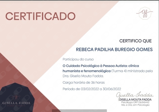 Estou há meses muito satisfeita com a terapia que a psicóloga Rebeca tem feito com meu filho. Terapia de muito respeito, amor e carinho.