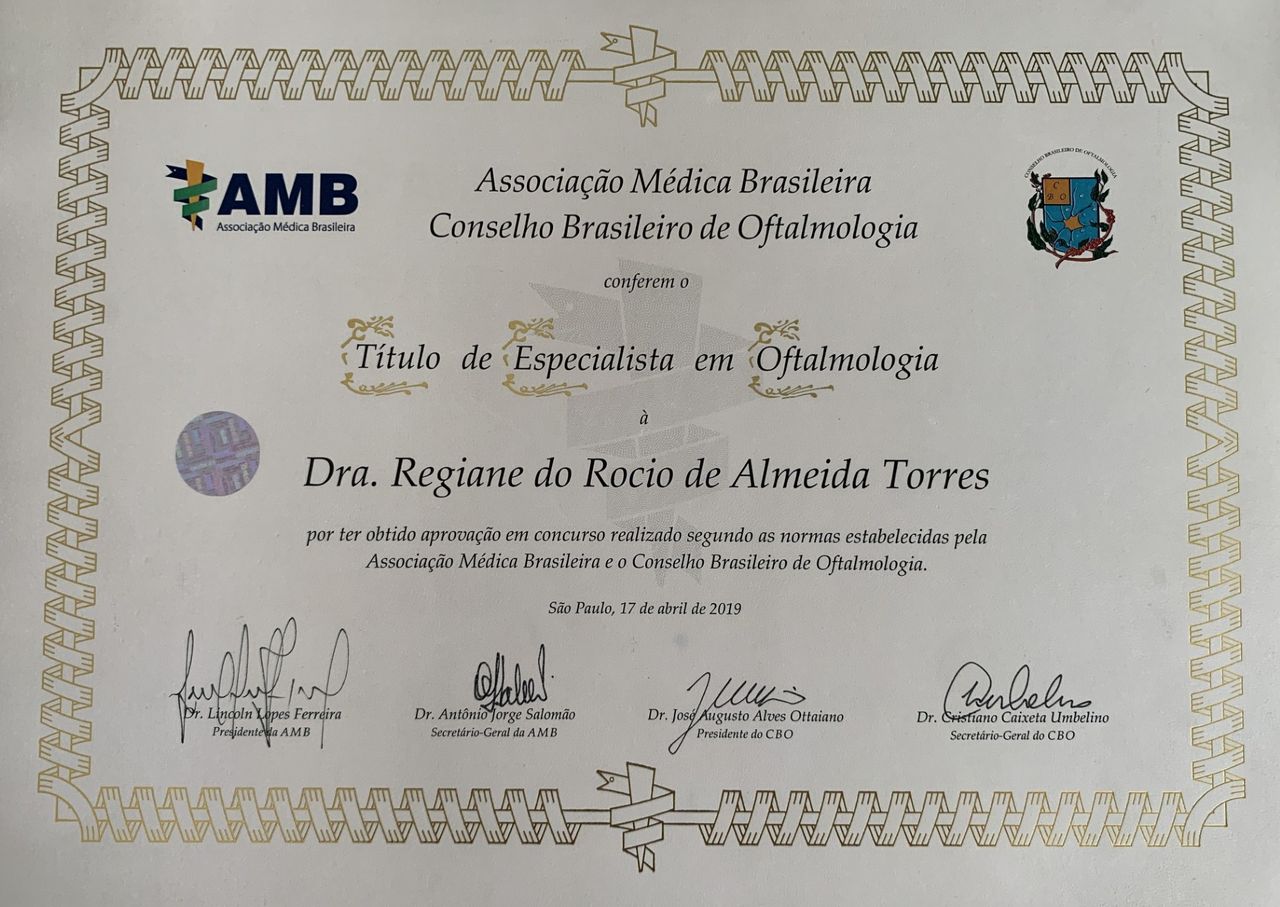 Médica oftalmologista com RQE ( Registro de Qualificação de Especialista) e título pela Sociedade Brasileira de Oftalmologia. Especialista em Retina e Catarata.